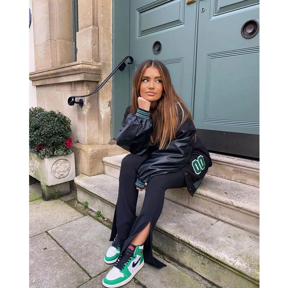 Женские бейсбольные куртки большого размера, модные кожаные куртки с длинным рукавом и вышитыми буквами