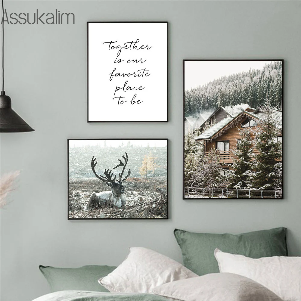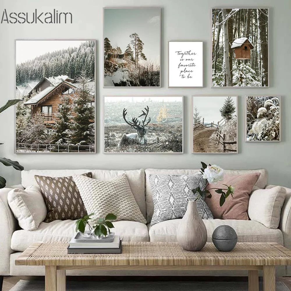 Зимний лес Снежный пейзаж настенный плакат плакаты с оленем пейзаж ...