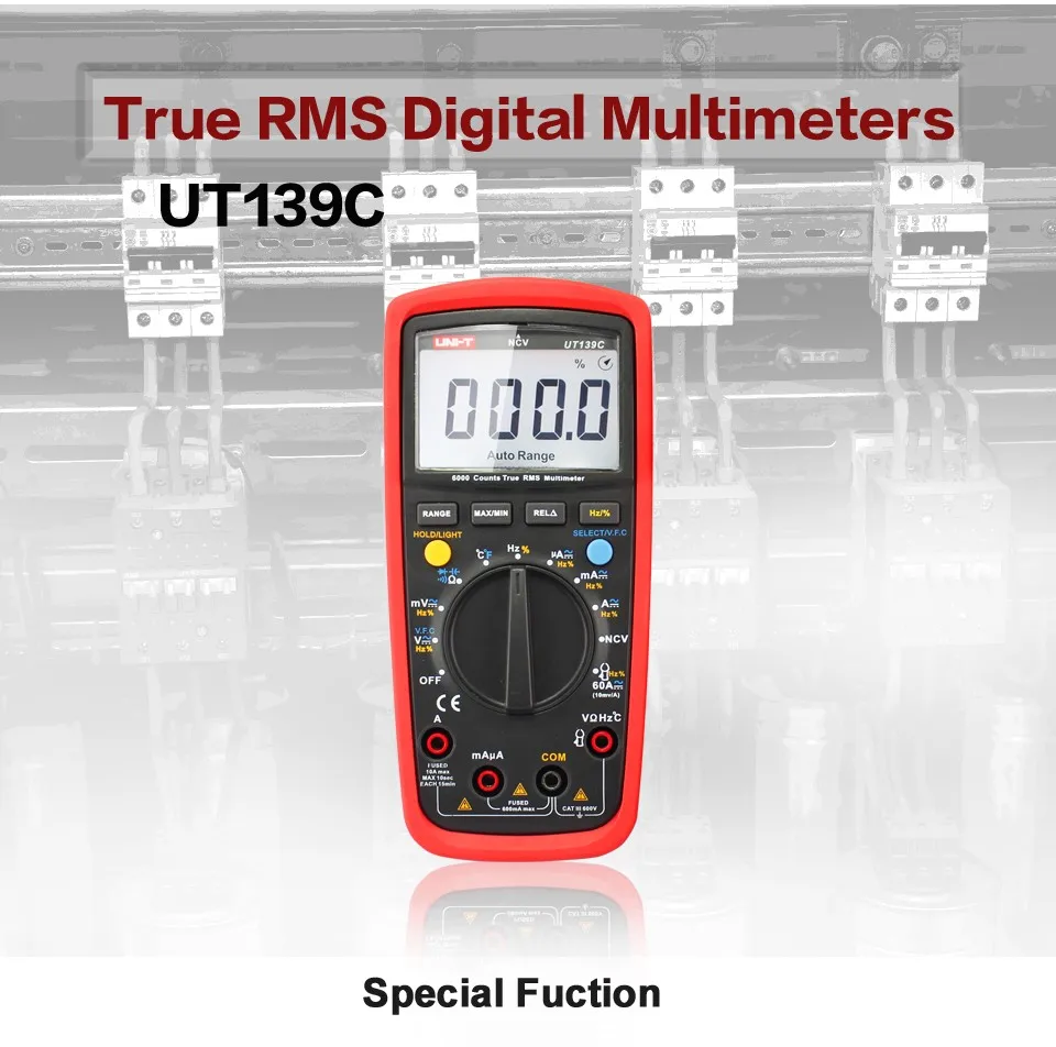 Цифровой мультиметр UNI-T UT139C с автоматическим выбором диапазона, измеритель истинных среднеквадратичных значений, ручной тестер конденсаторов, 6000 отсчетов, вольтметр, температурный