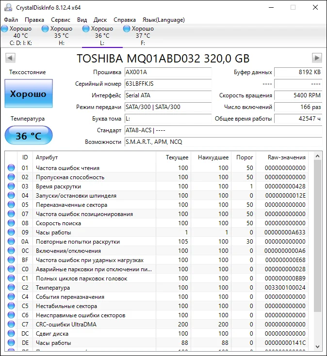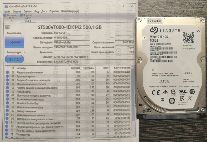 хороший диск, пришел за неделю до краснодарского края. Определился как Seagate. При проверке диска через Викторию, бэдов не обнаружено, смарт на статусе good. Все хорошо
