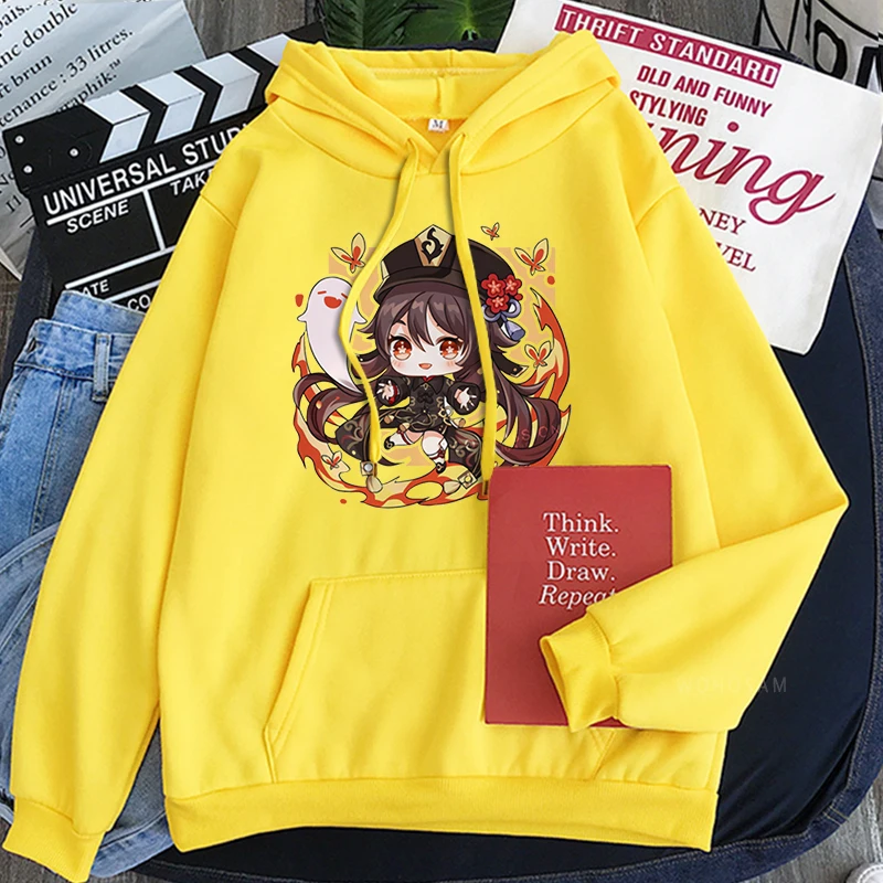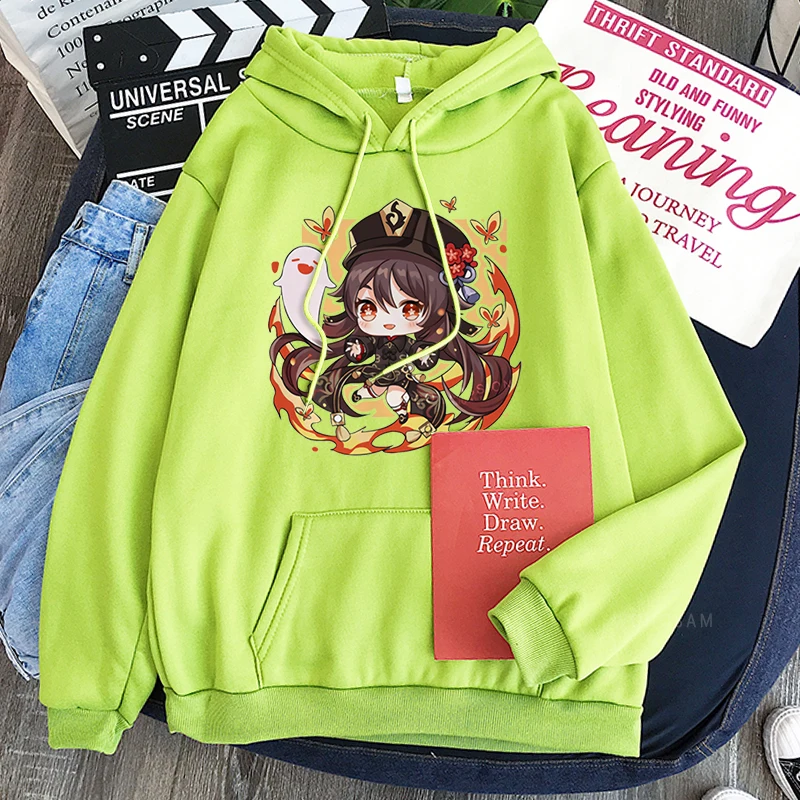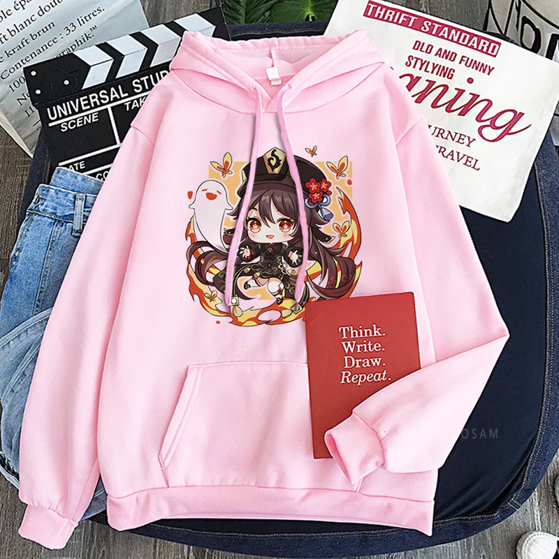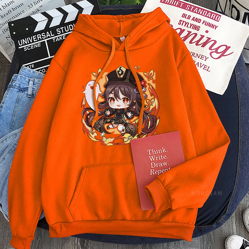Милые толстовки с капюшоном Ху Тао из игры Genshin Impact, аниме Харадзюку, уличная одежда с длинным рукавом, корейская мода, милый зимний свитшот для девочек