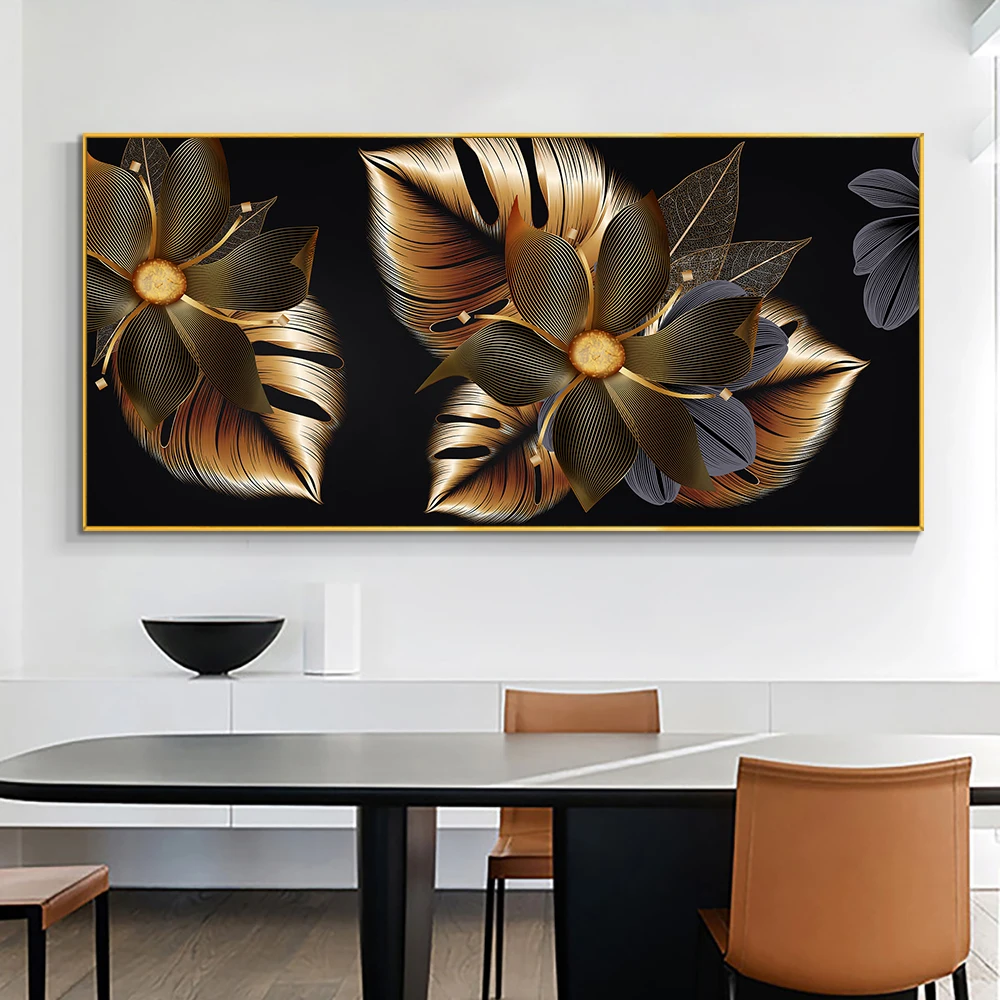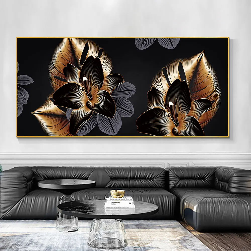 Настенные постеры с изображением черных и золотых цветов