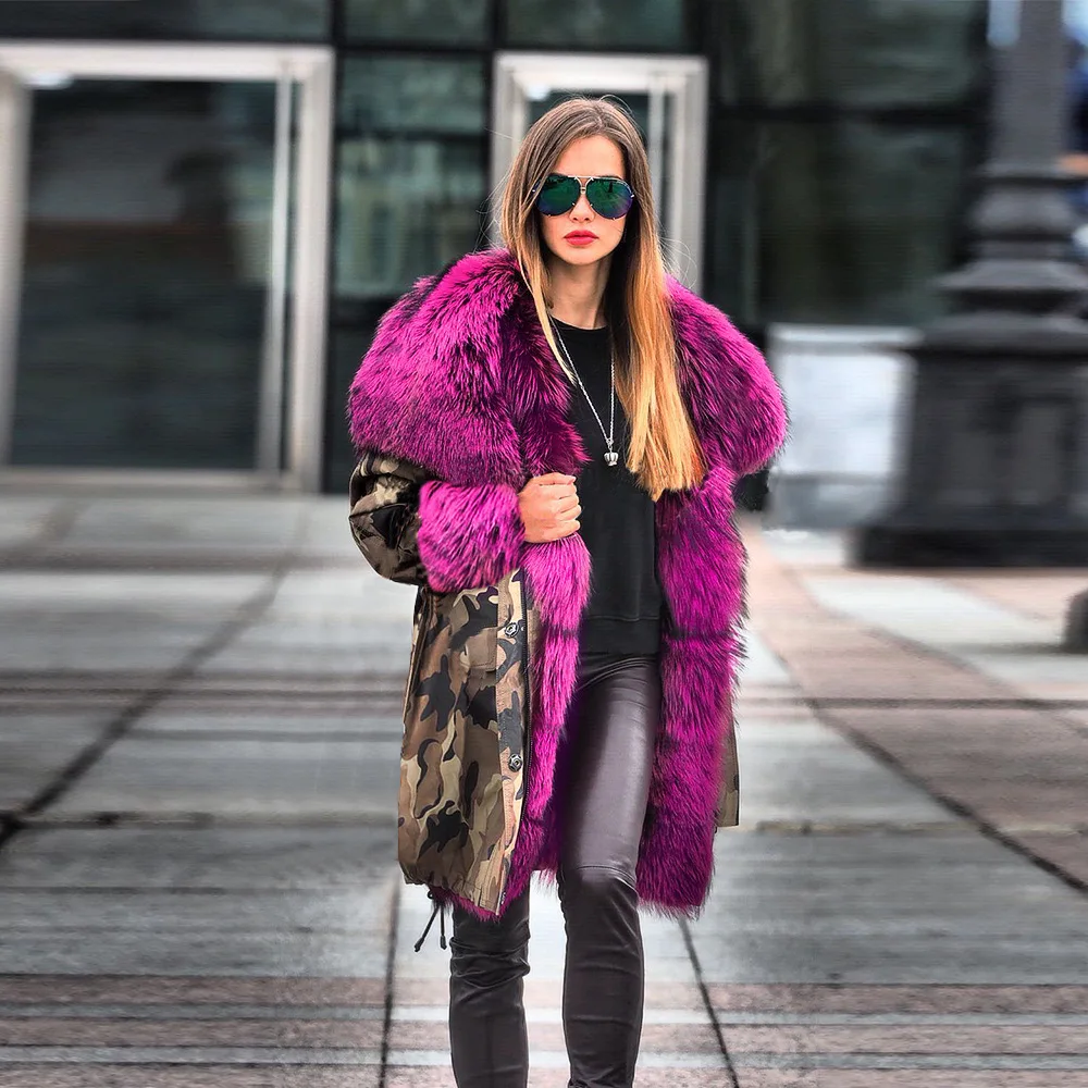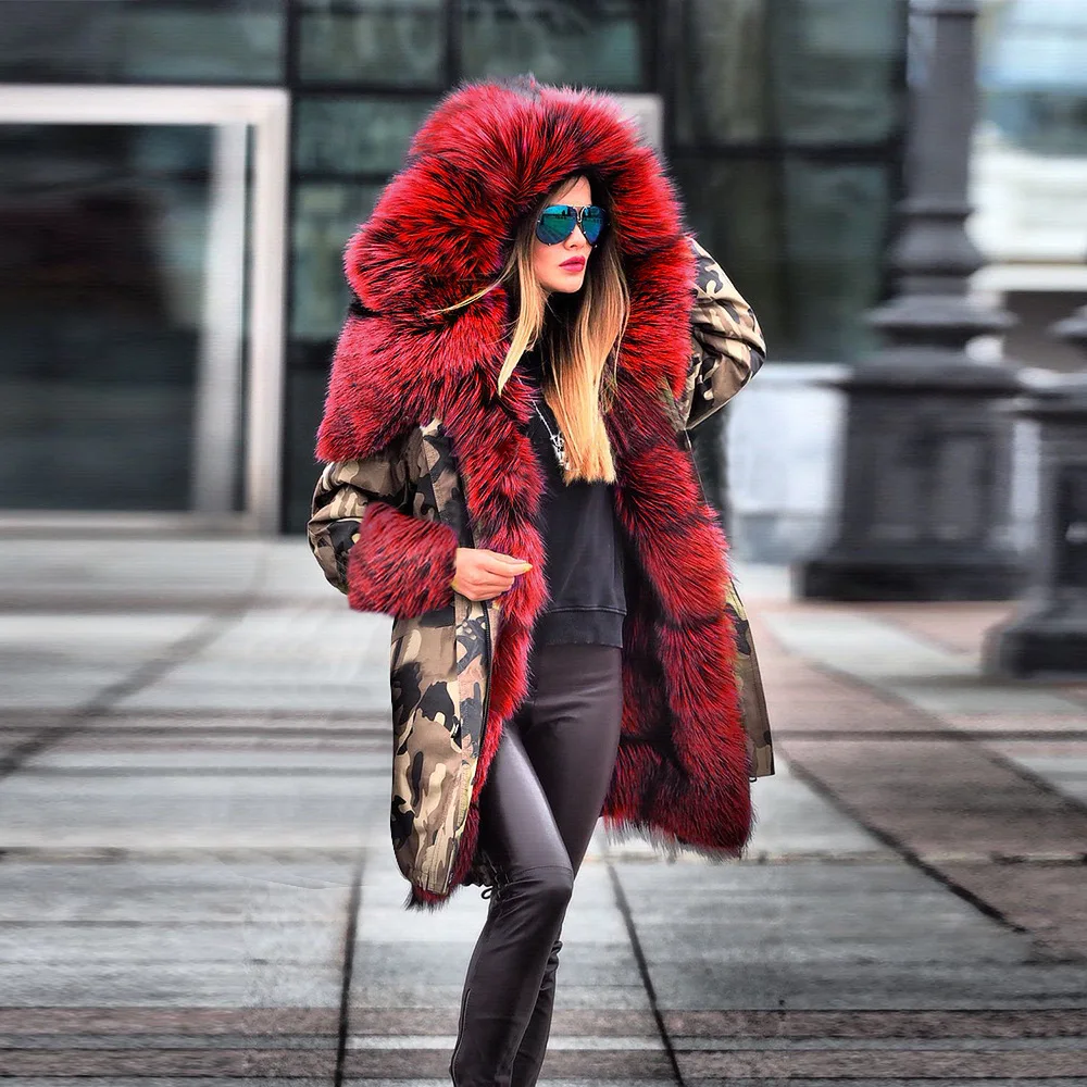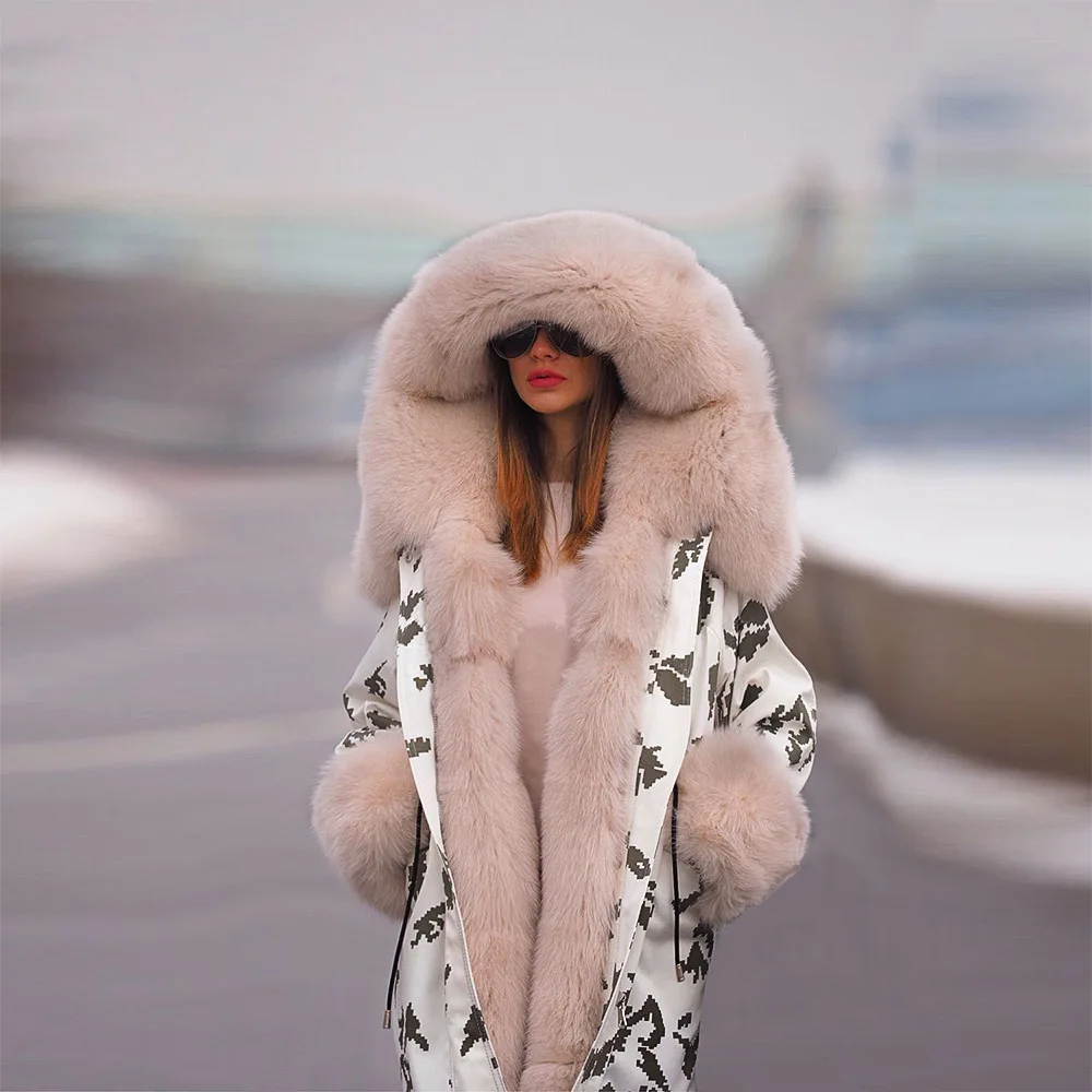 Роскошные большие парки с пушистым воротником, женские зимние теплые пальто с капюшоном, новинка 2021, модные пальто средней длины для женщин, модные пушистые парки, шапка