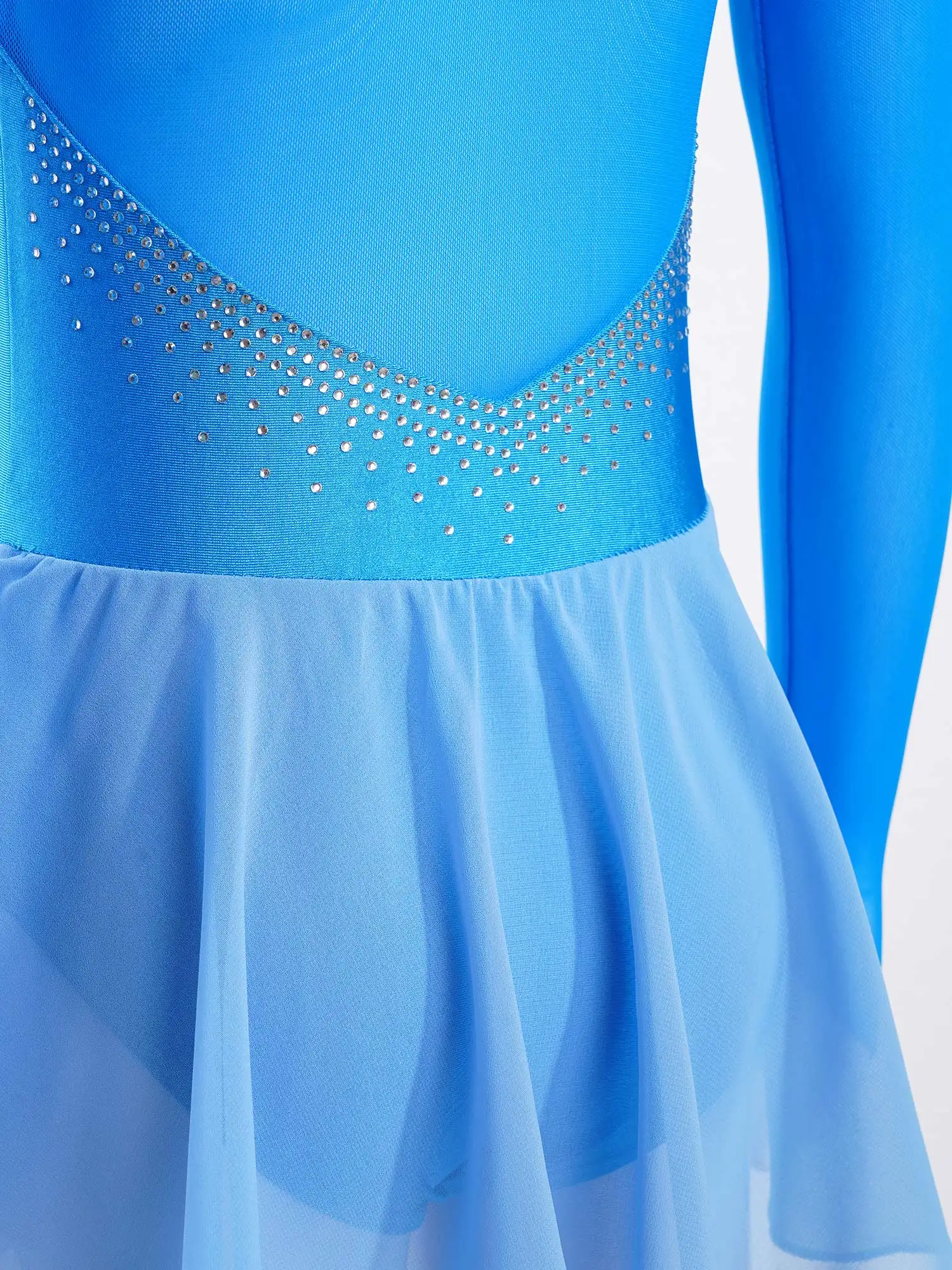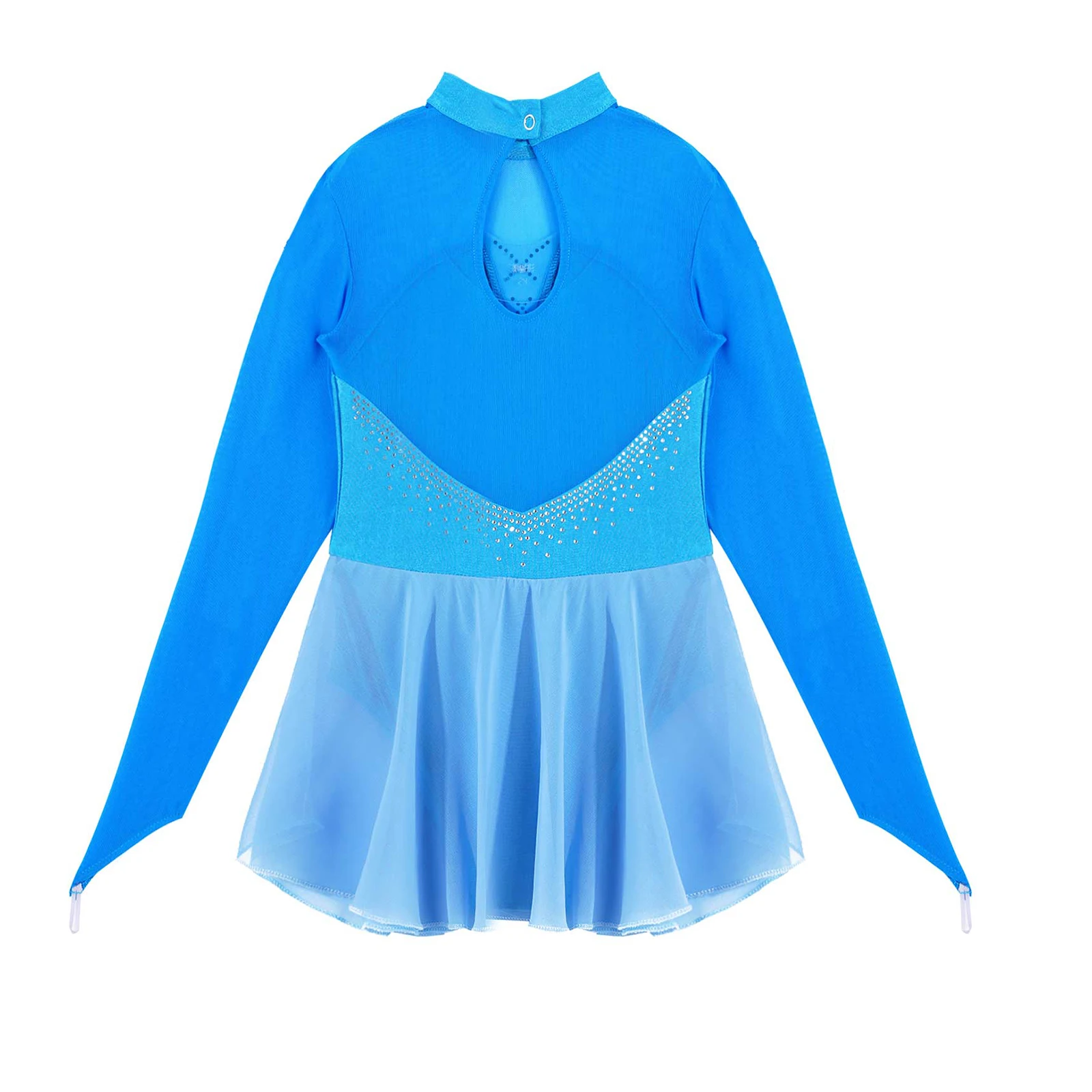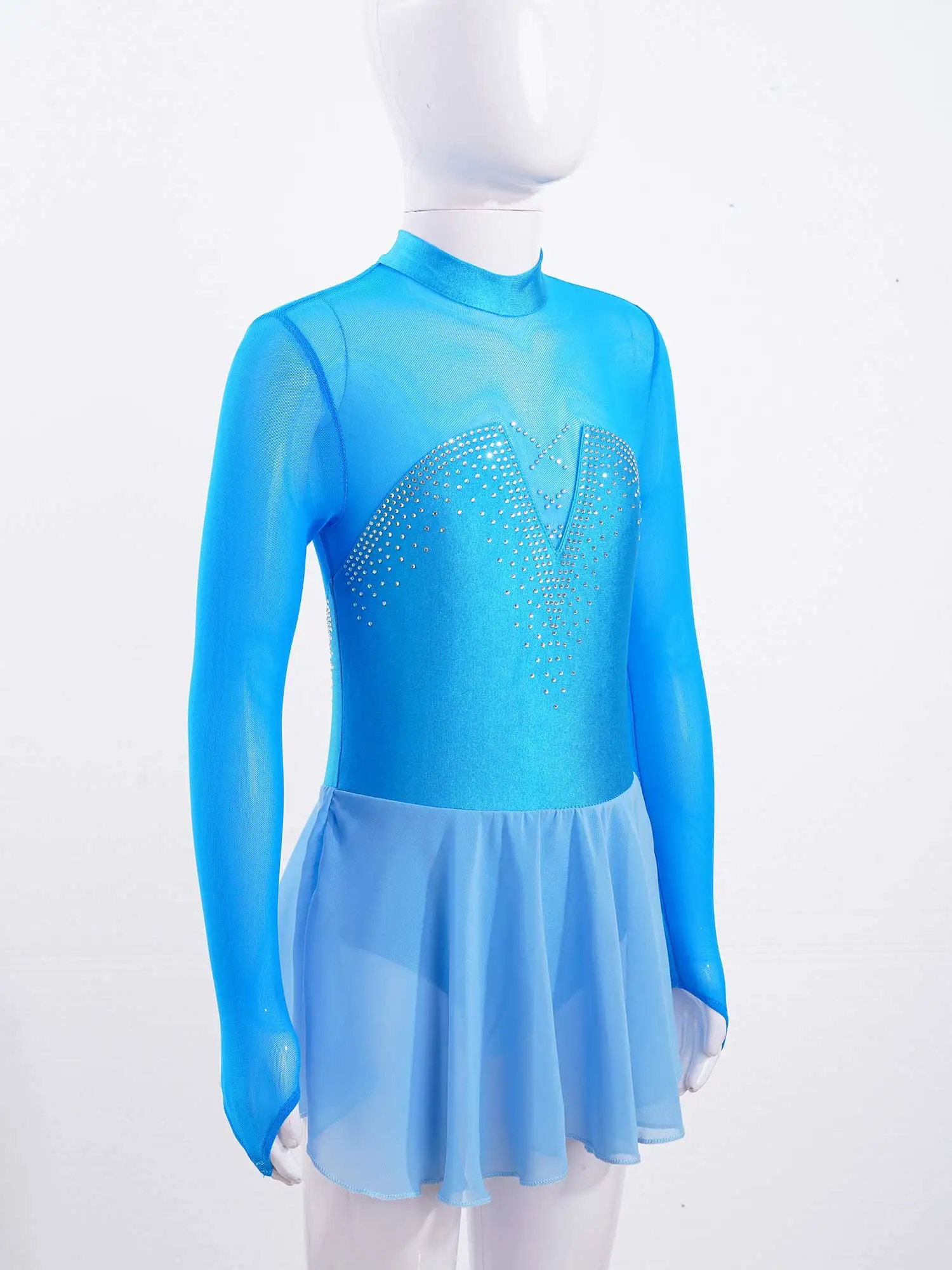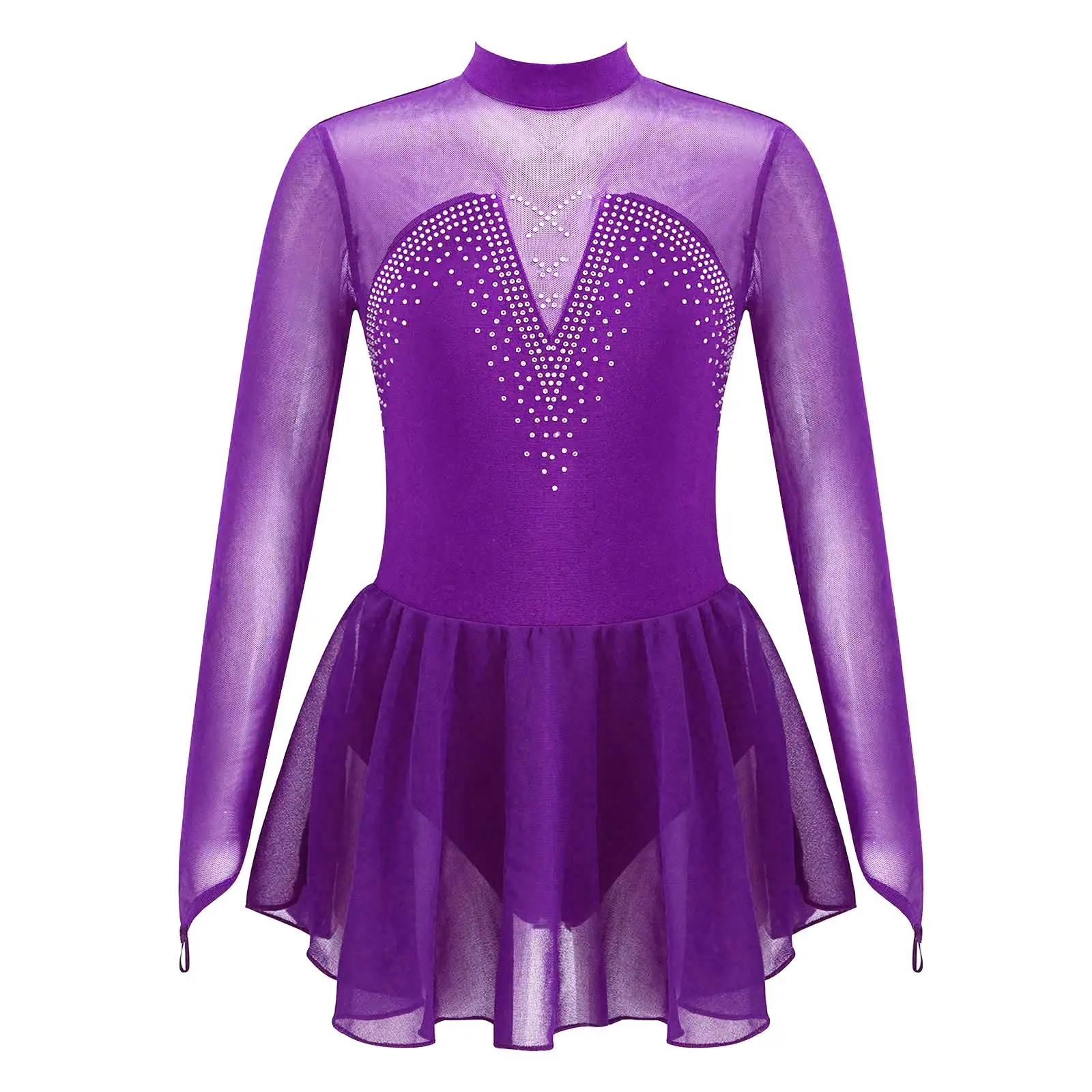 От 6 до 14 лет, детское платье с длинными рукавами для девочек с открытой спиной к требованиям заказчика; Сверкающие стразы из сетчатой ткани, с фигурное катание на коньках балетное платье, гимнастический купальник