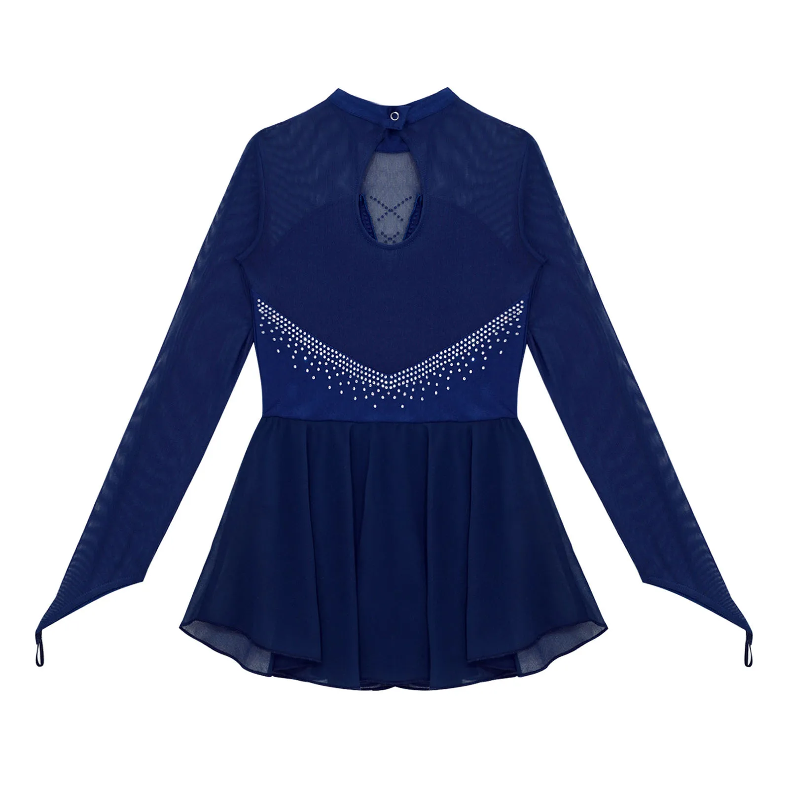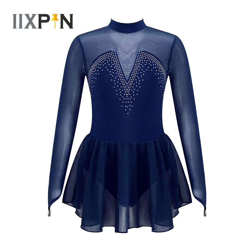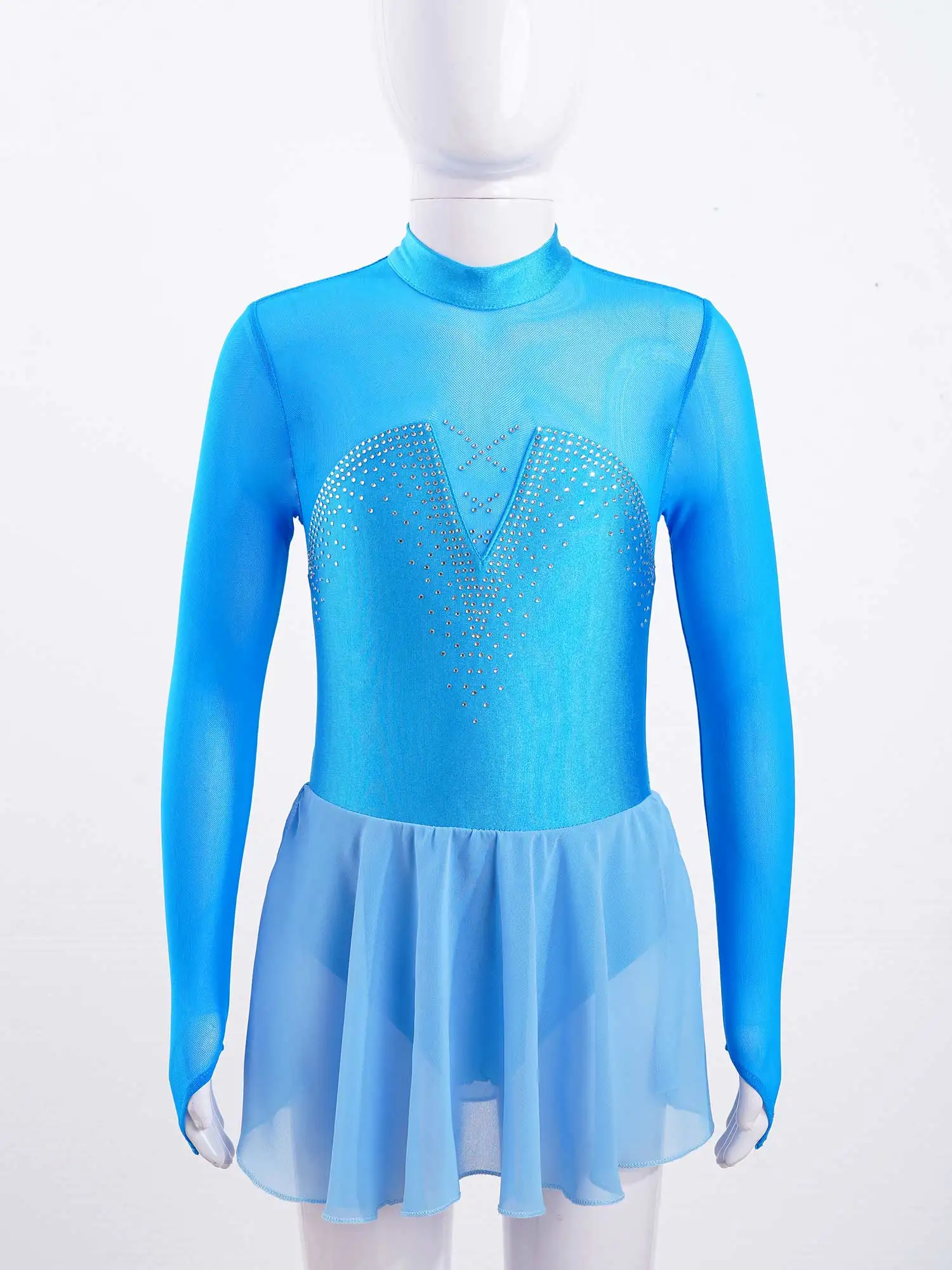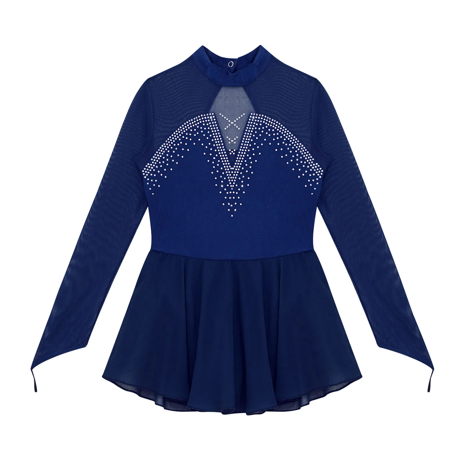 От 6 до 14 лет, детское платье с длинными рукавами для девочек с открытой спиной к требованиям заказчика; Сверкающие стразы из сетчатой ткани, с фигурное катание на коньках балетное платье, гимнастический купальник