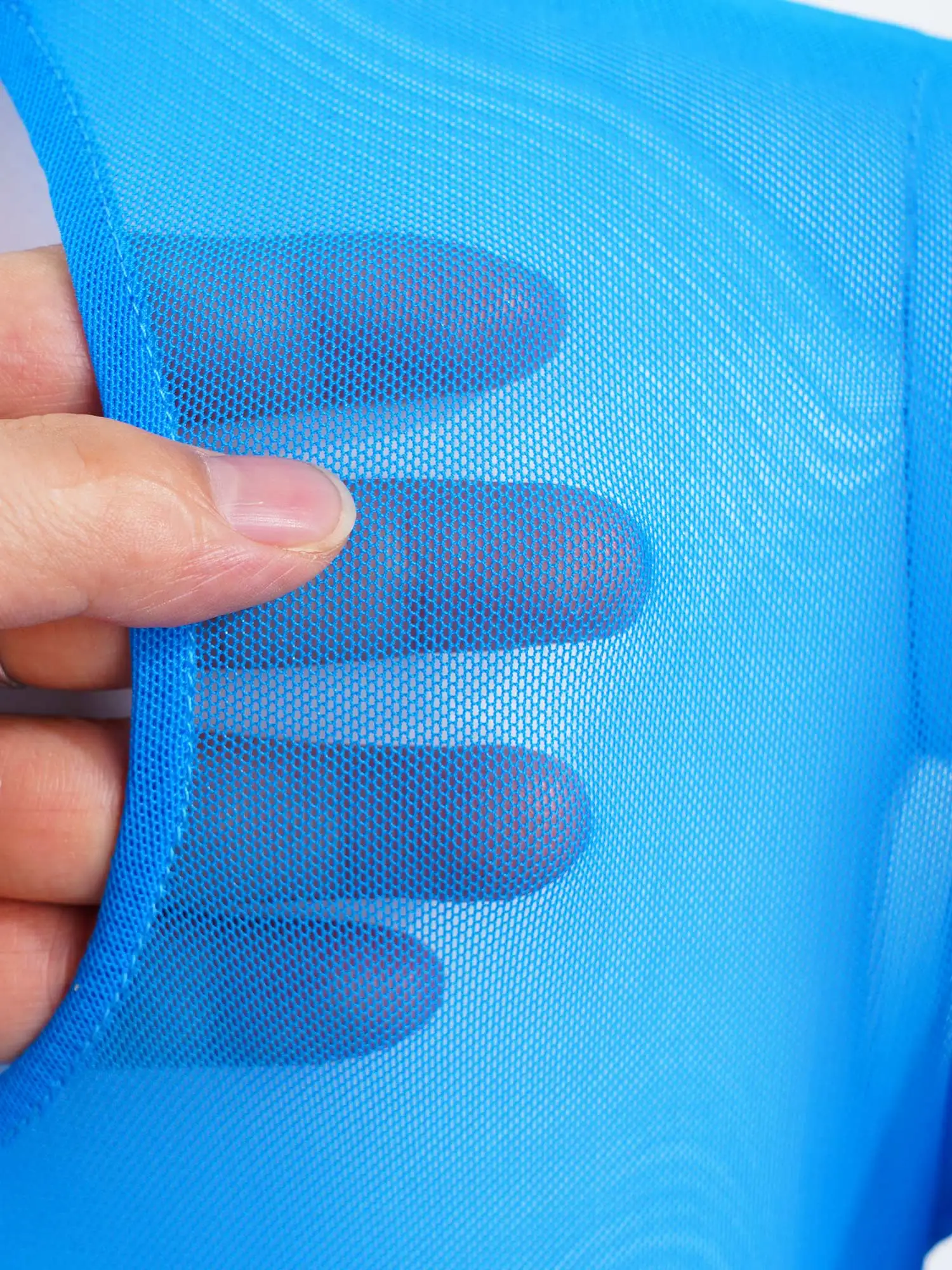 Сетчатый длинный рукав, круглый воротник, открытая спина с отверстиями и модный стиль пэчворк, сверкающие стразы спереди и сзади.