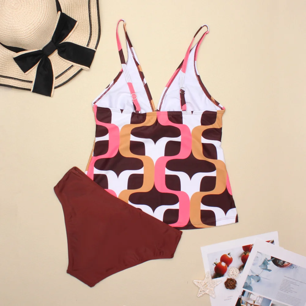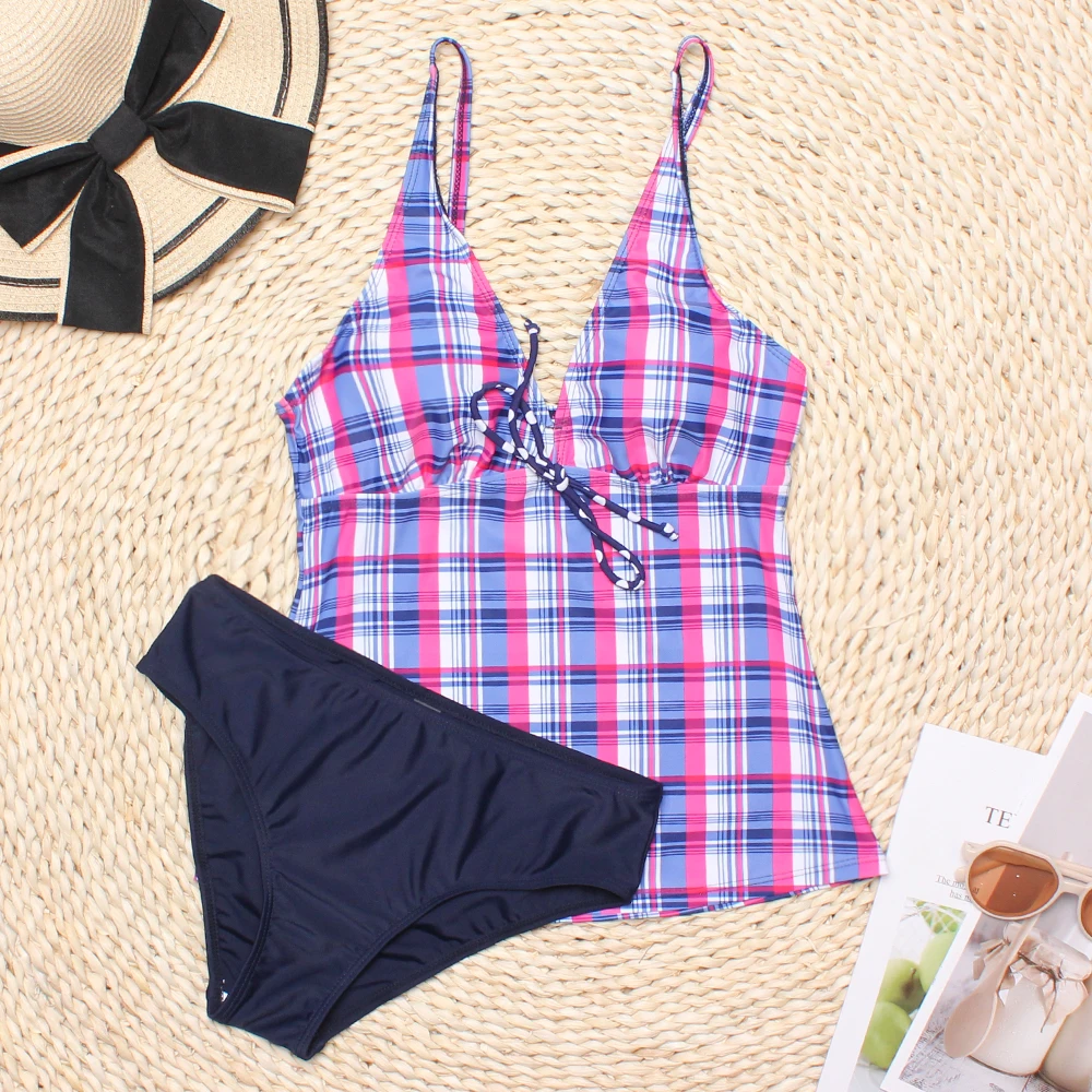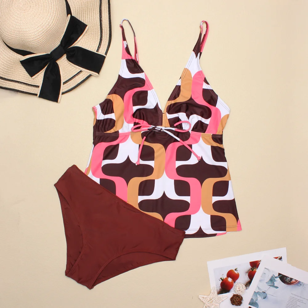 Бикини с V-образным вырезом и контролем живота, женский купальник, сексуальные пляжные купальные костюмы с низкой талией, Танкини с лентами, боди из двух предметов, 2022