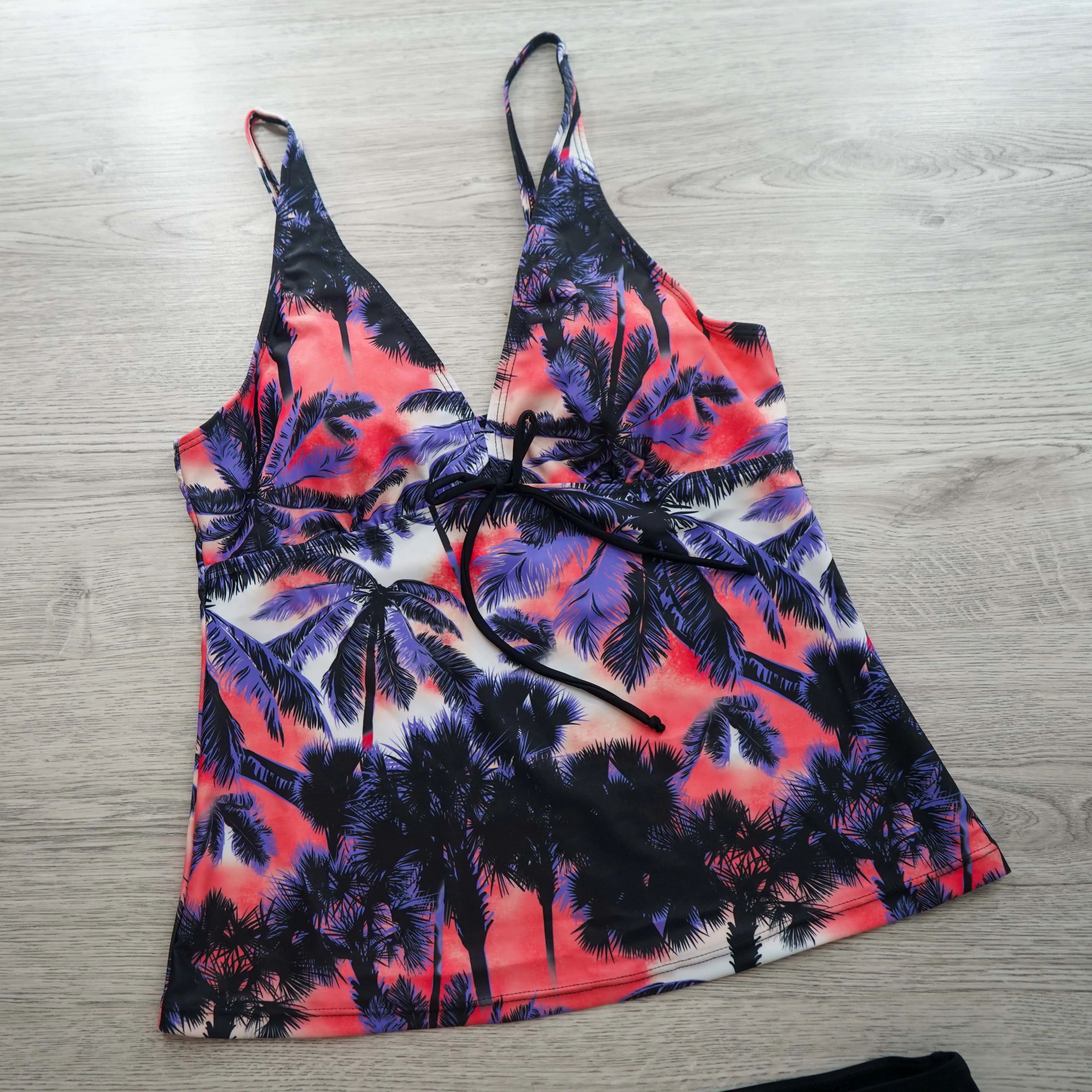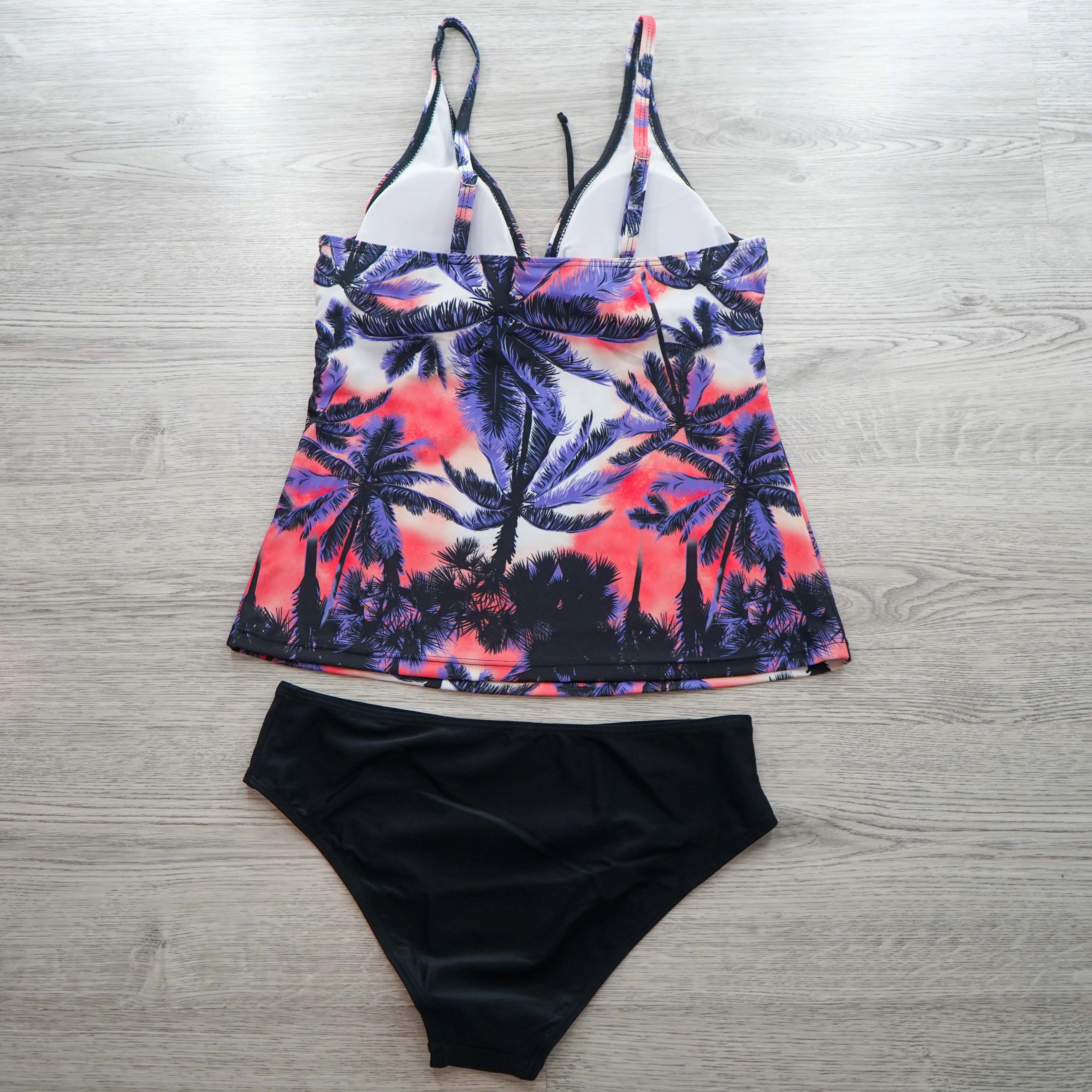 Купальник состоит из топа - майки и плавок. Удачная модель, когда хочется скрыть недостатки)качество исполнения отличное, швы и строчки ровные, неприятного запаха не было, ниток тоже. ткань - стандартная для купальников, есть бирка с составом : 85% полиэстер, 15% спандекс. Топ имеет Белый подклад. Декольте не глубокое, все прилично) есть поролоновые чашки, которые при желании можно вынуть. Спереди декоративный бантик. Плавки средней посадки, гигиеническая наклейка присутствует.