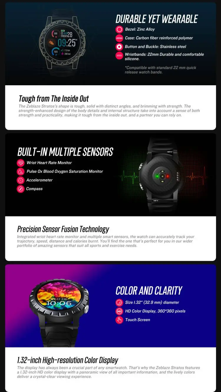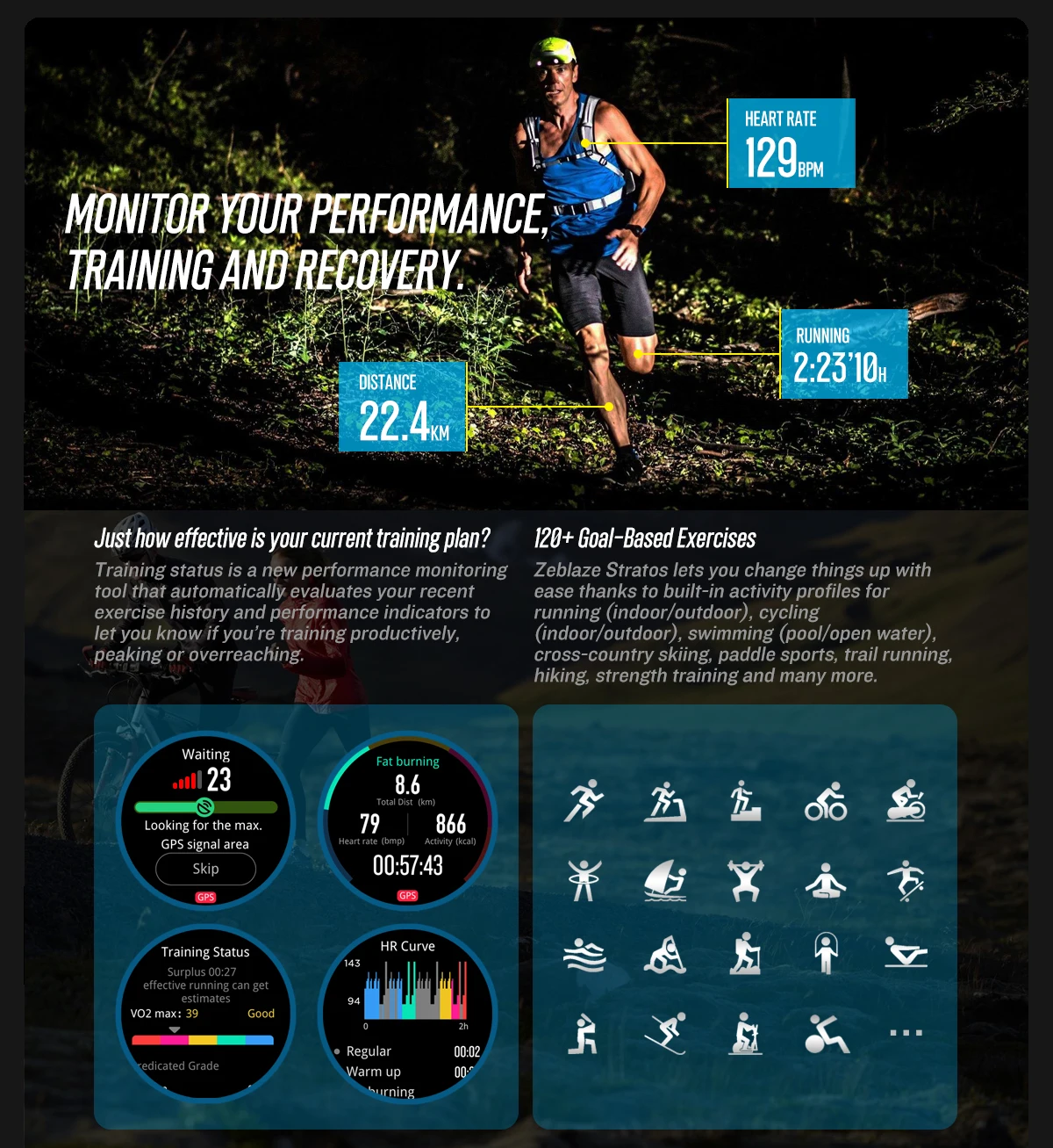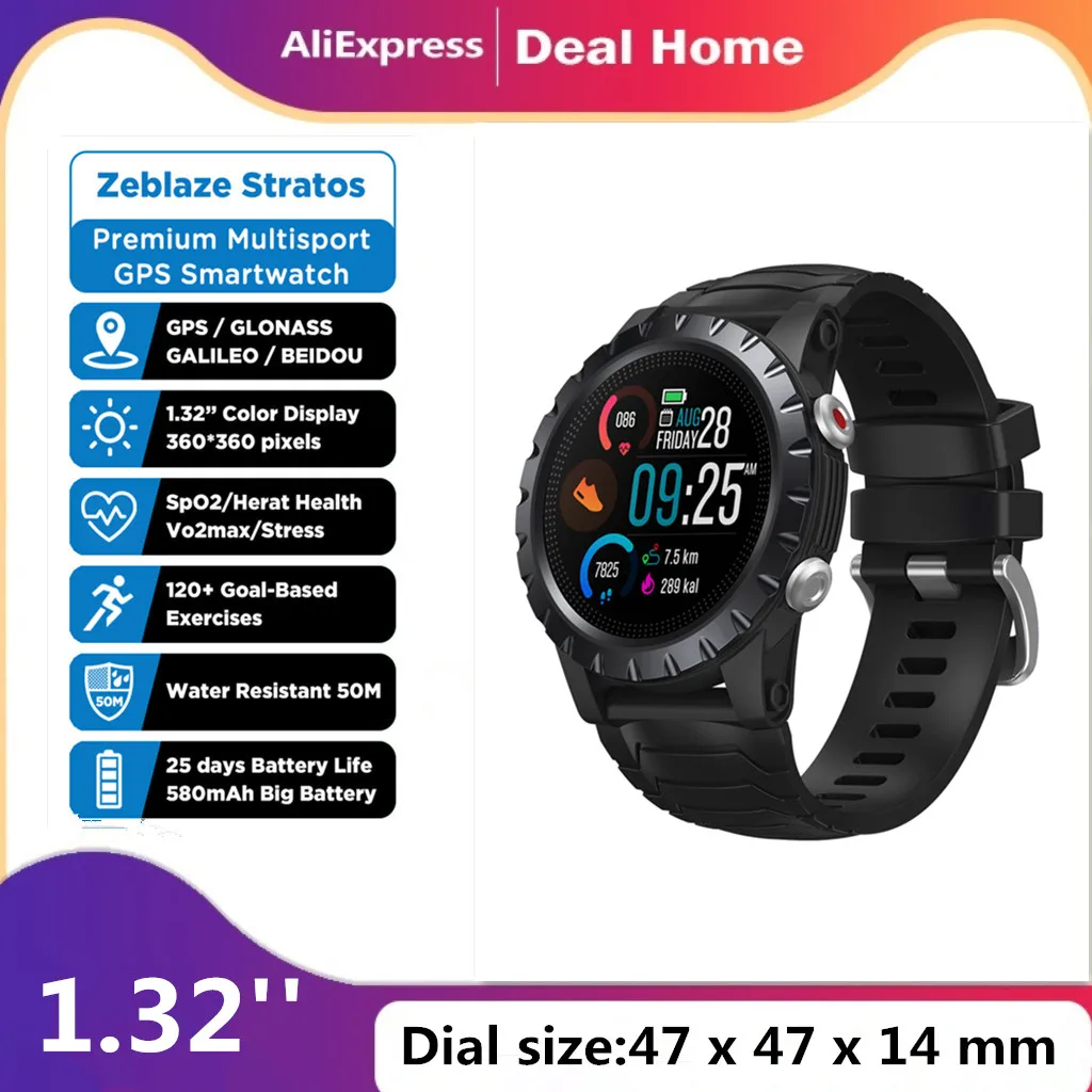 Смарт-часы Zeblaze Stratos GPS, встроенные 4 спутника3 режима, GPS сердцеSpO2VO2maxмонитор напряжения, мужские Смарт-часы IP68, водонепроницаемые