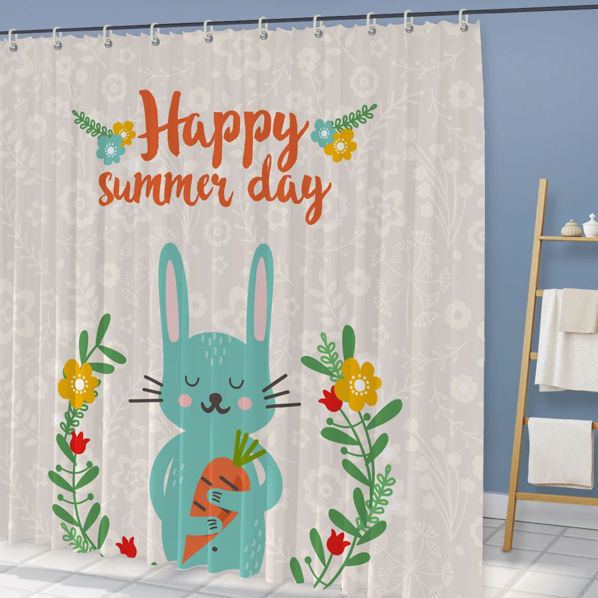 Шторы для душа с принтом дикой природы, водонепроницаемые занавески для ванной комнаты, с мультяшным принтом кота, лисы, кролика, аксессуары для ванной комнаты, декоративные крючки