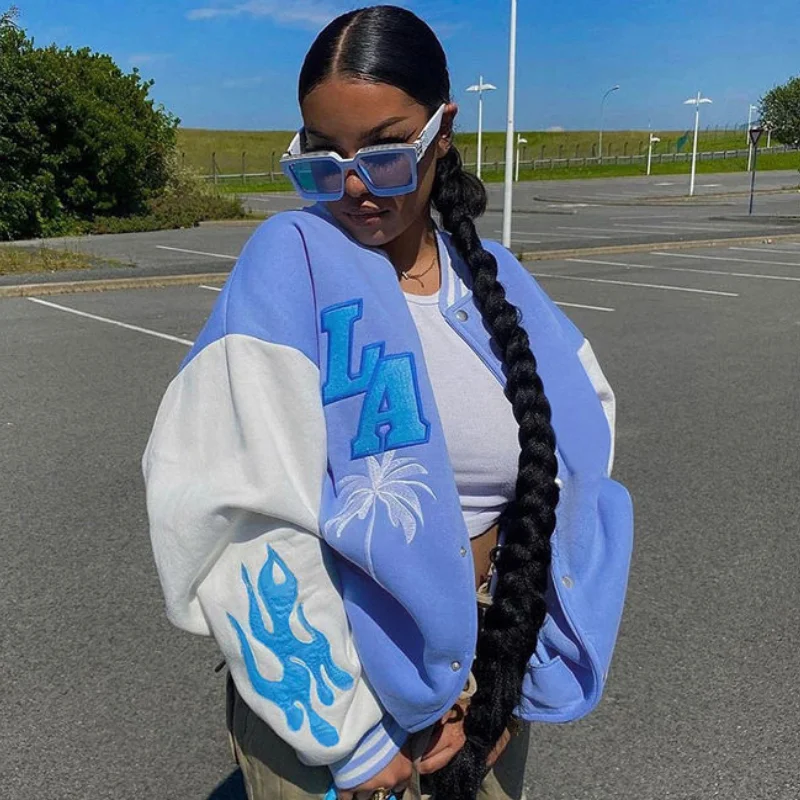 Американские ретро куртки с вышитыми буквами, пальто для женщин, новинка 2021, уличная бейсбольная форма в стиле хип-хоп Y2K, Повседневная Свободная куртка для пары, ТопТаблица размеров