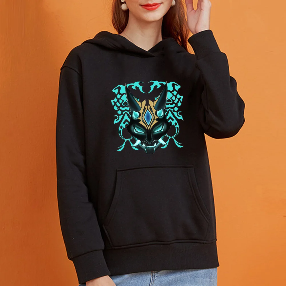 Толстовка Genshin с капюшоном для мужчин и женщин Ху Тао и Сяо одежда с мультяшным принтом кавайный Аниме Стиль Повседневная веснаосень