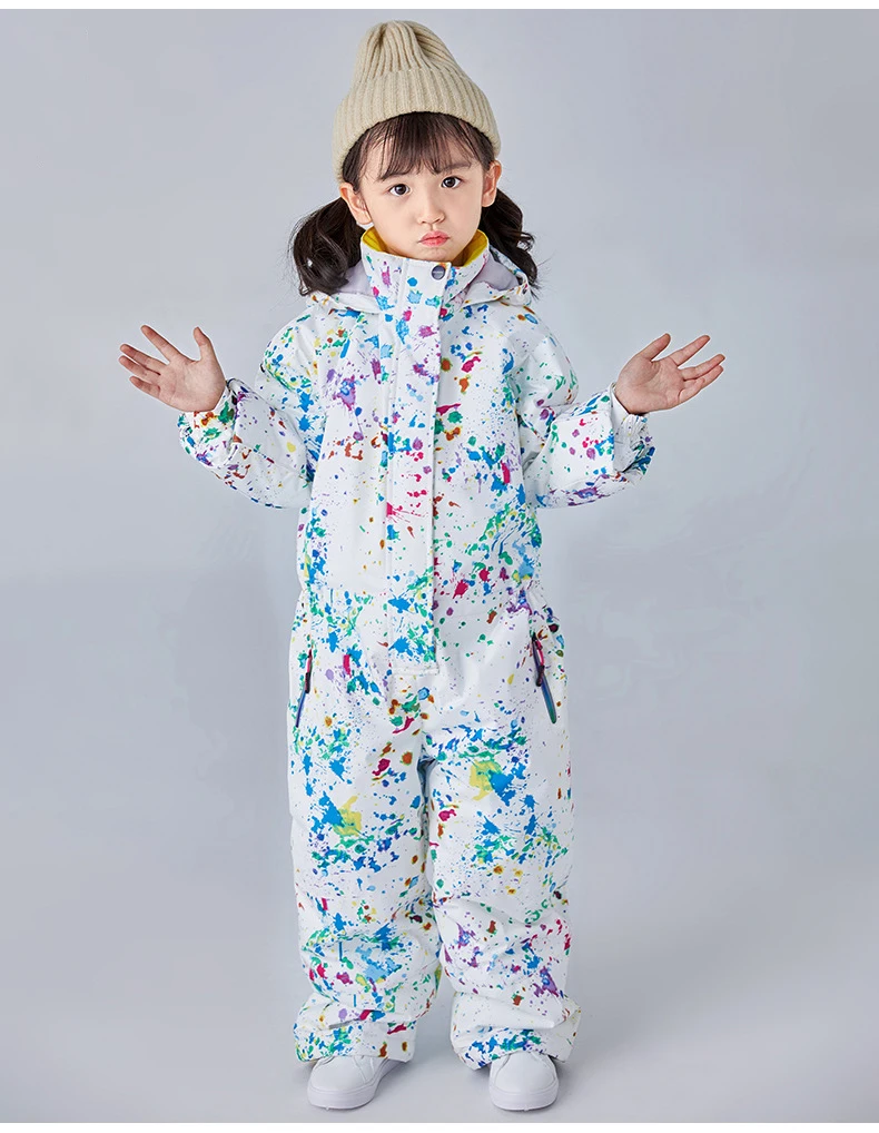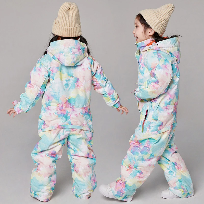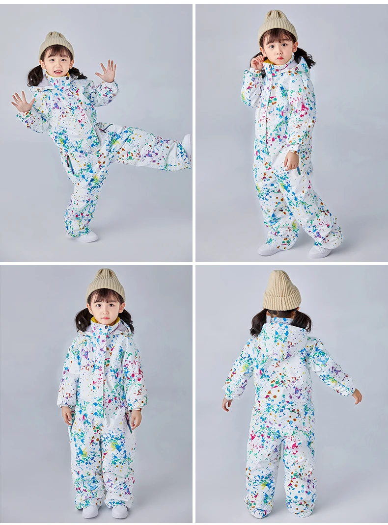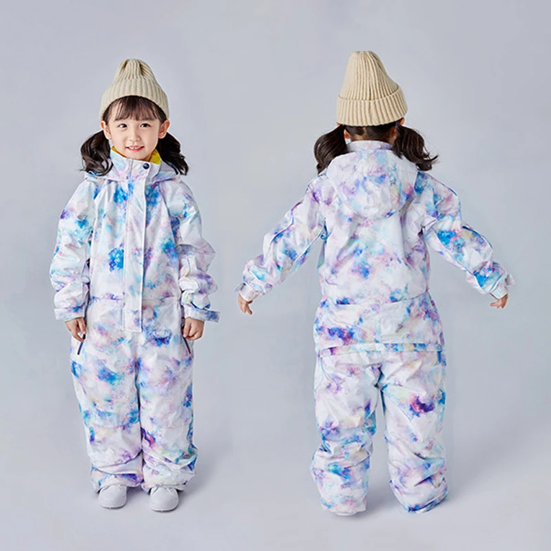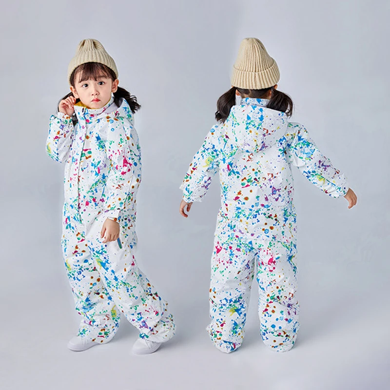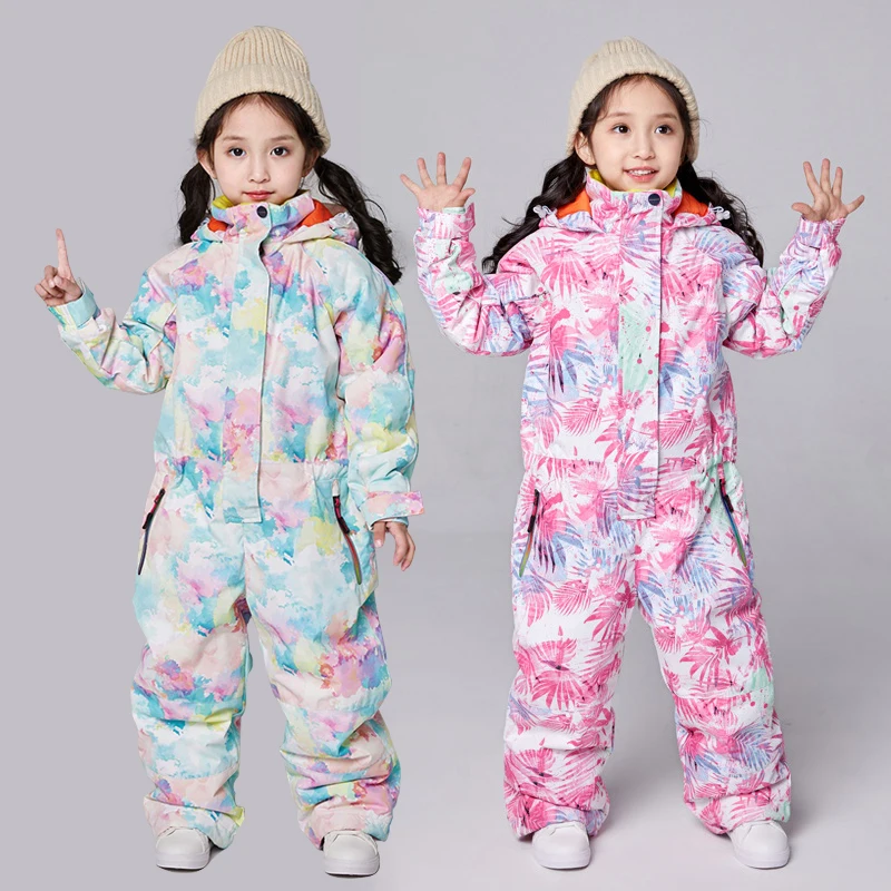 Зимний теплый комбинезон для сноуборда для девочек, детский лыжный костюм с капюшоном, спортивные цельные детские зимние комбинезоны, водонепроницаемые комплекты одежды для малышей