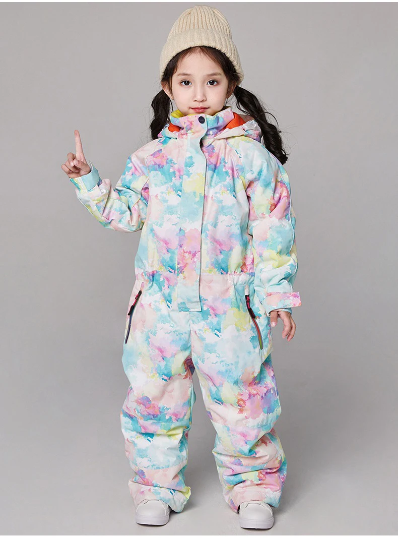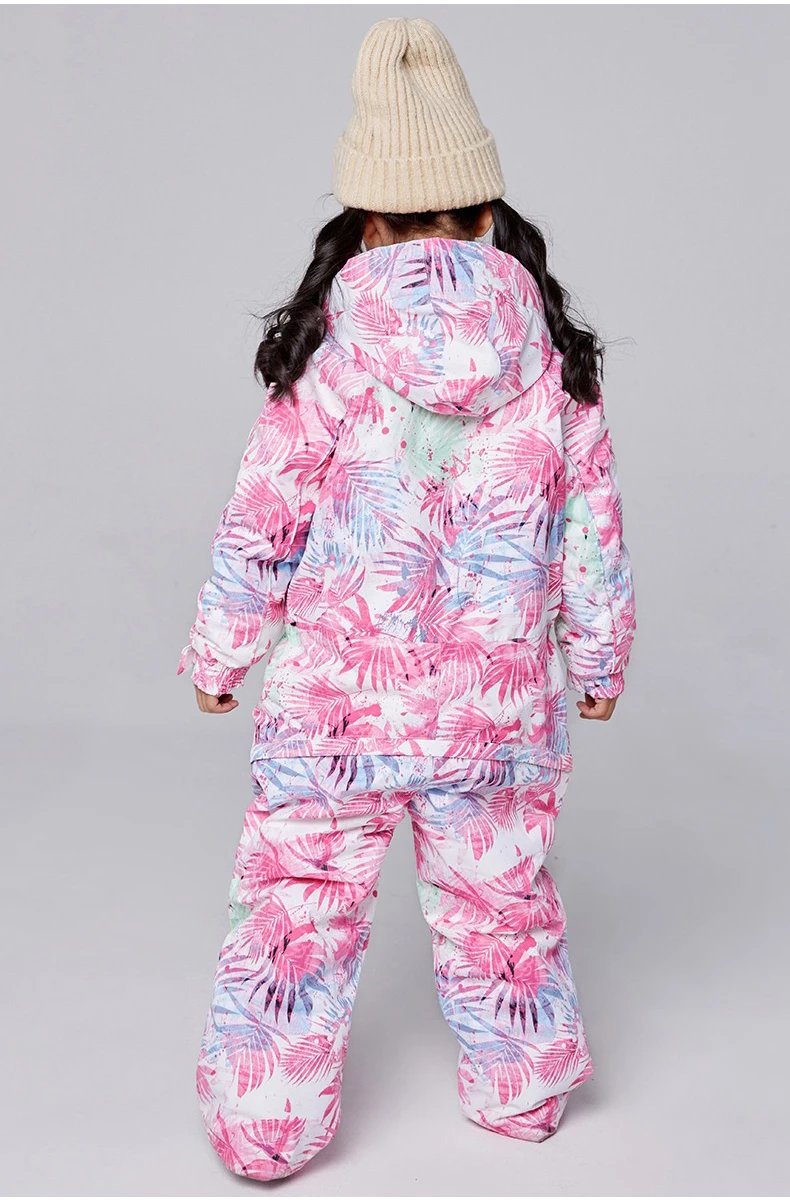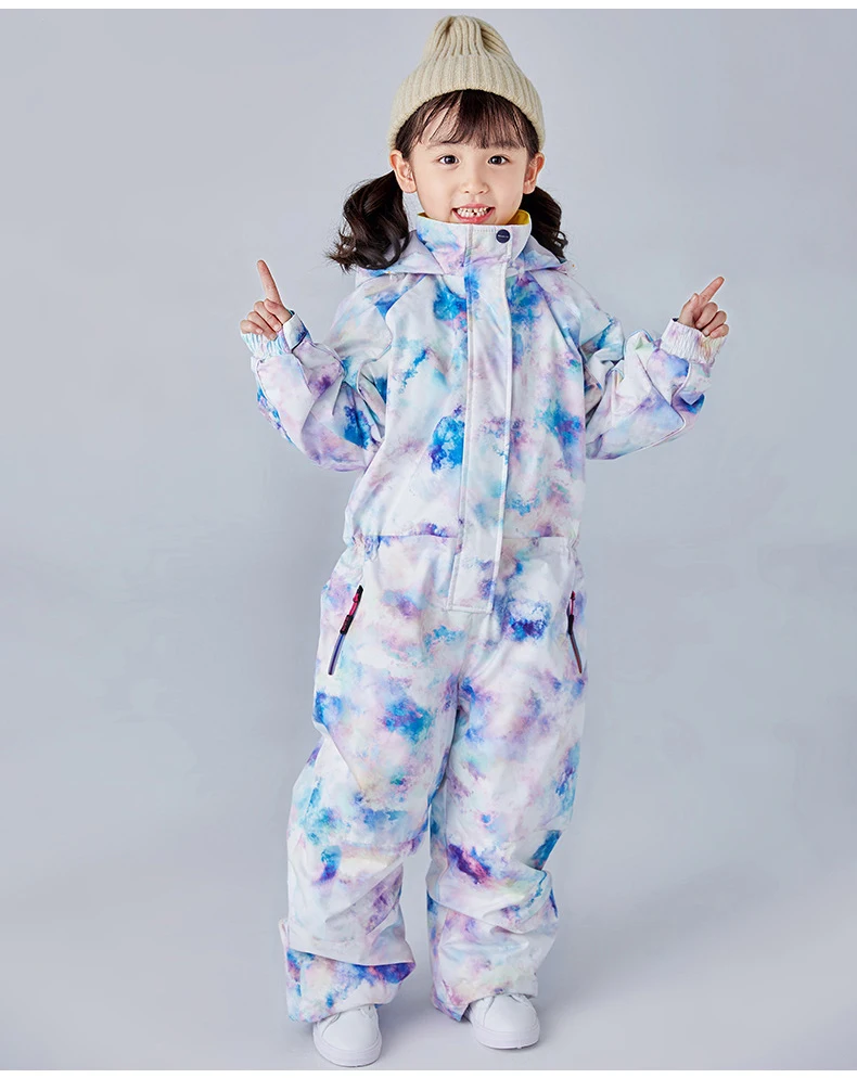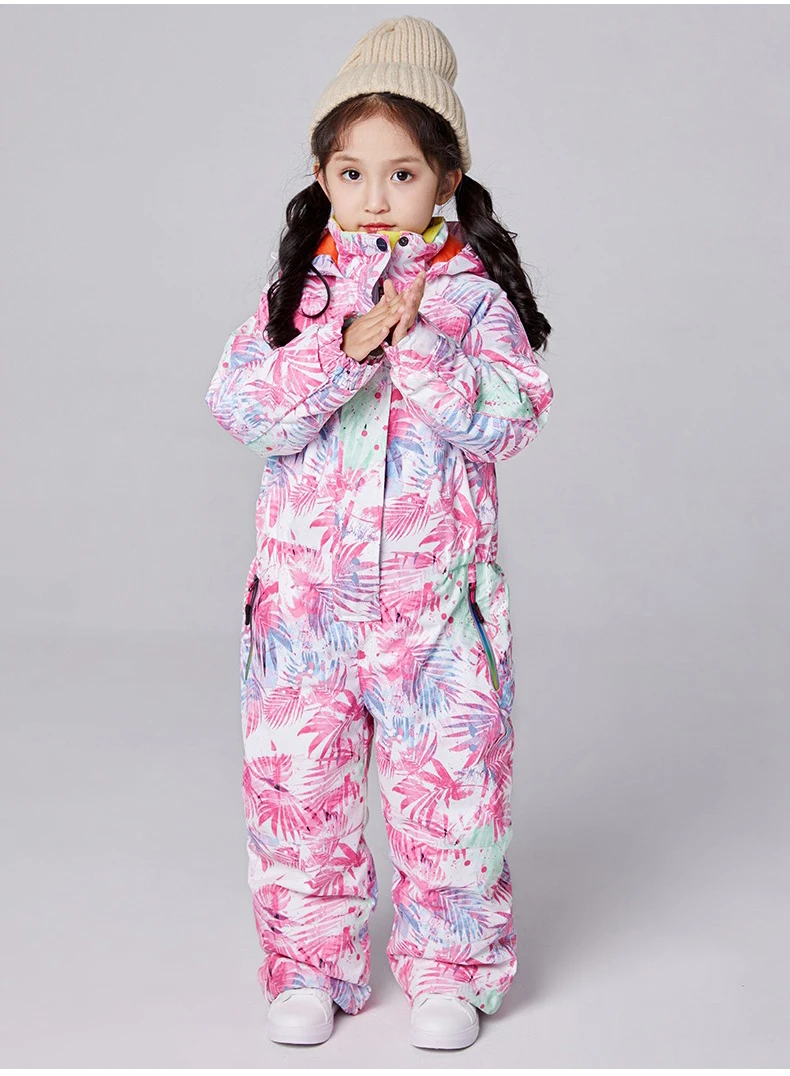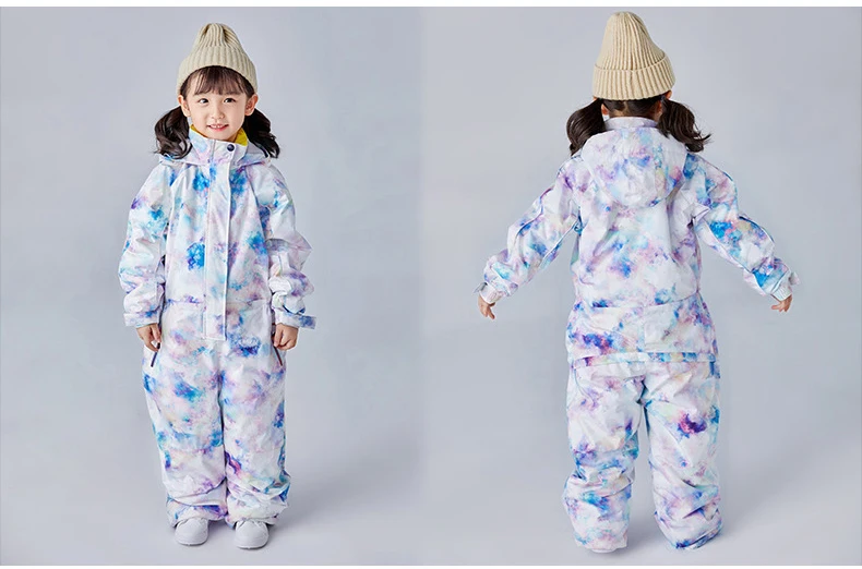 Зимний теплый комбинезон для сноуборда для девочек, детский лыжный костюм с капюшоном, спортивные цельные детские зимние комбинезоны, водонепроницаемые комплекты одежды для малышей