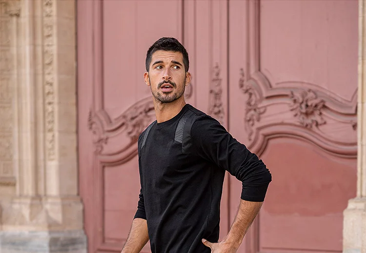Мужская футболка с длинным рукавом KUEGOU, черная хлопковая футболк...
