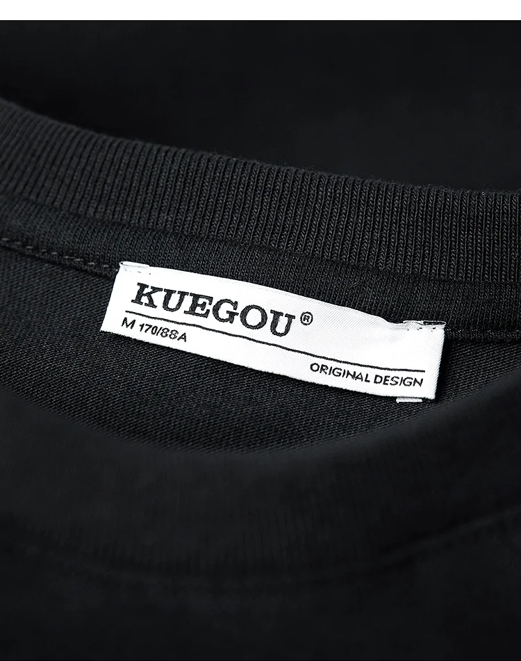 Мужская футболка с длинным рукавом KUEGOU, черная Винтажная футболк...