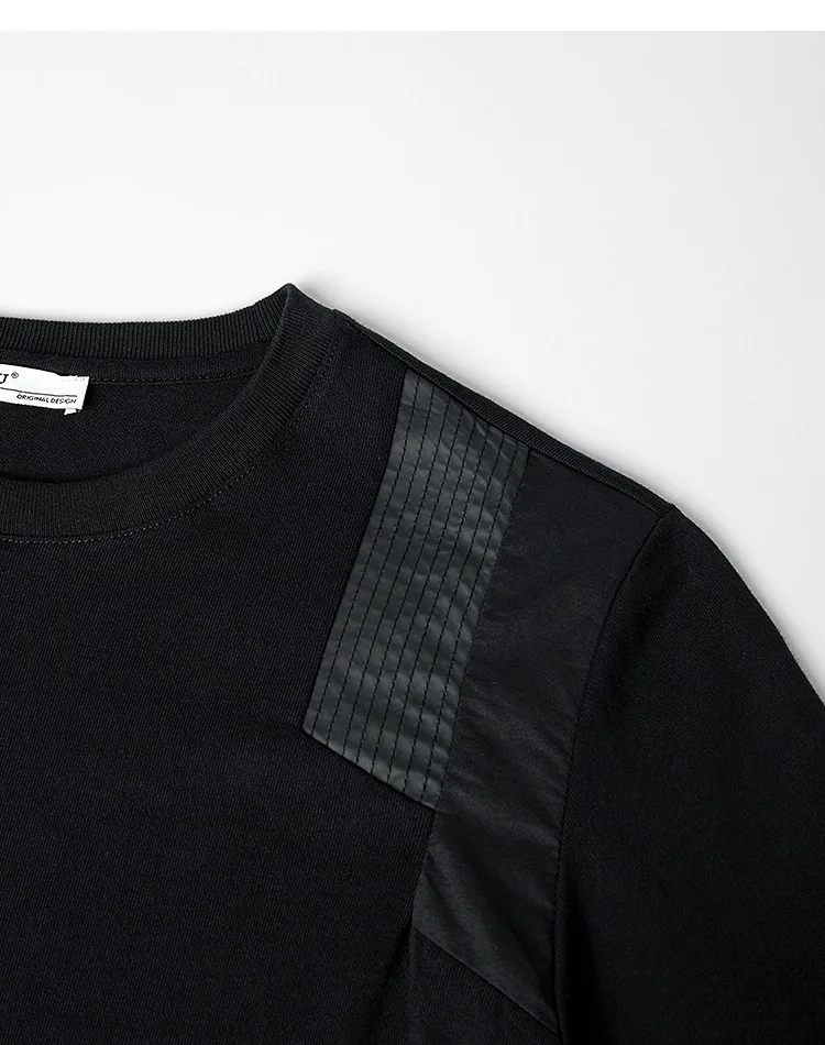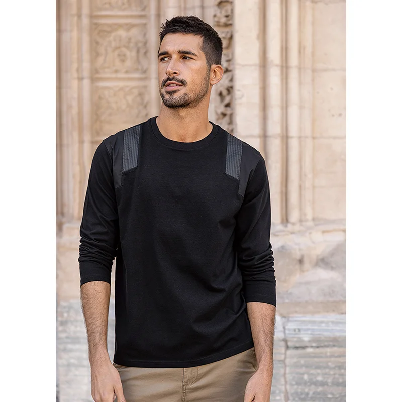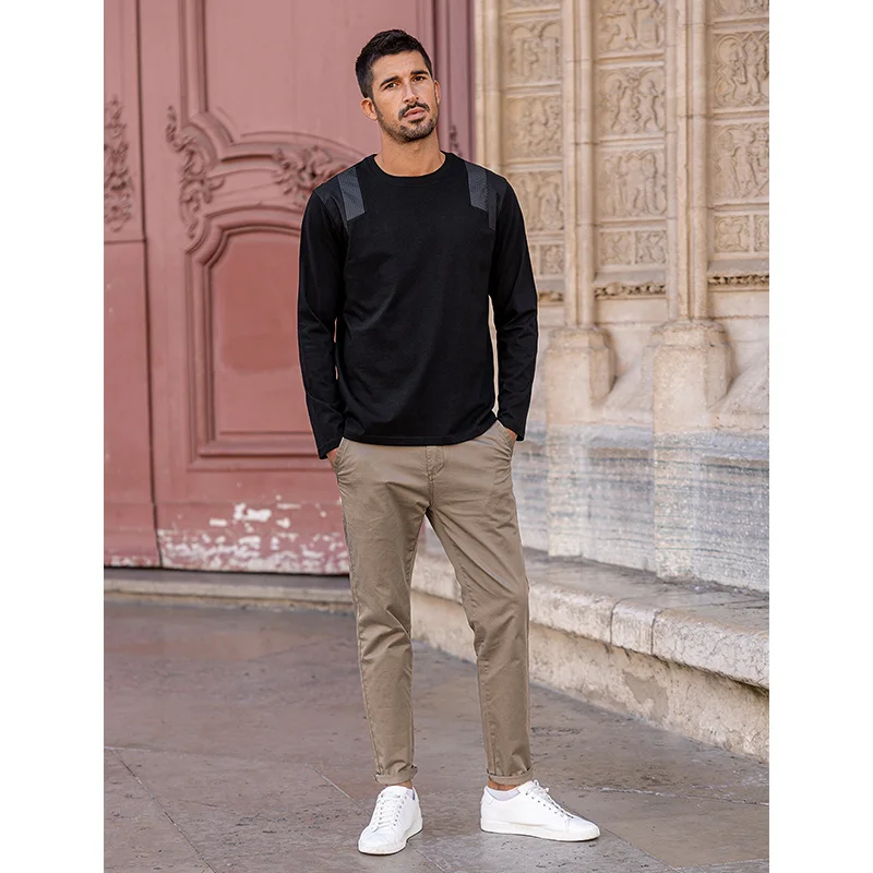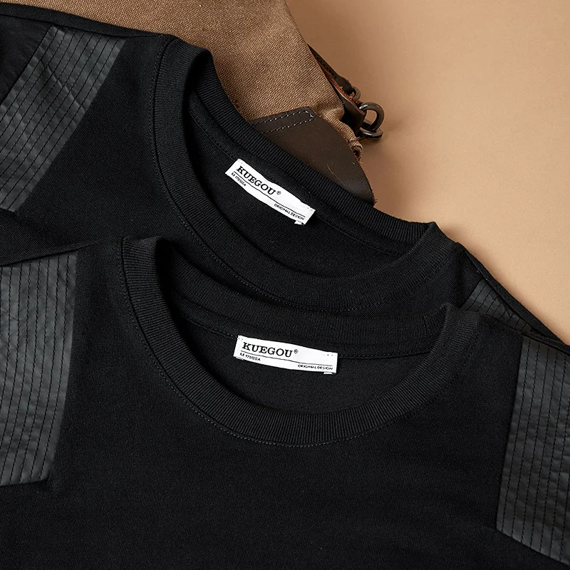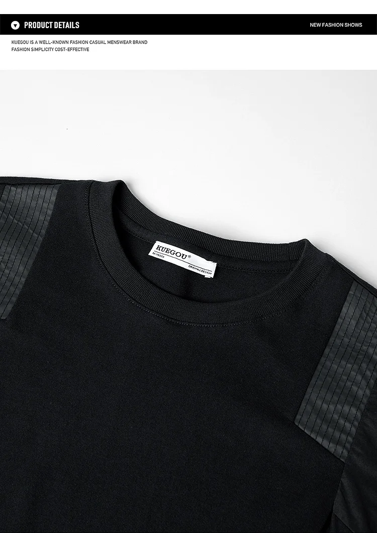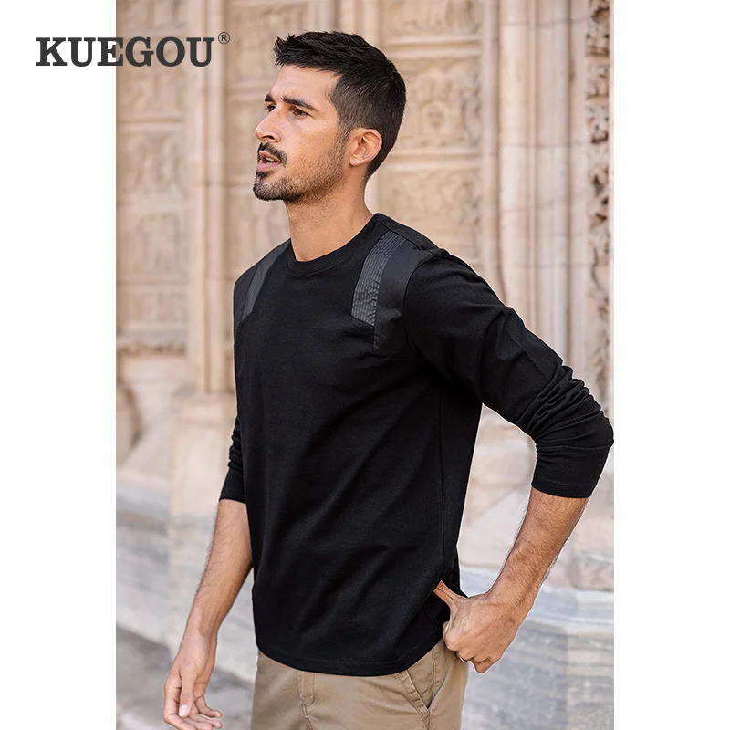 Мужская футболка с длинным рукавом KUEGOU, черная футболка с длинными рукавами, выполненная из 2022 хлопка, в стиле пэчворк, осень 100%