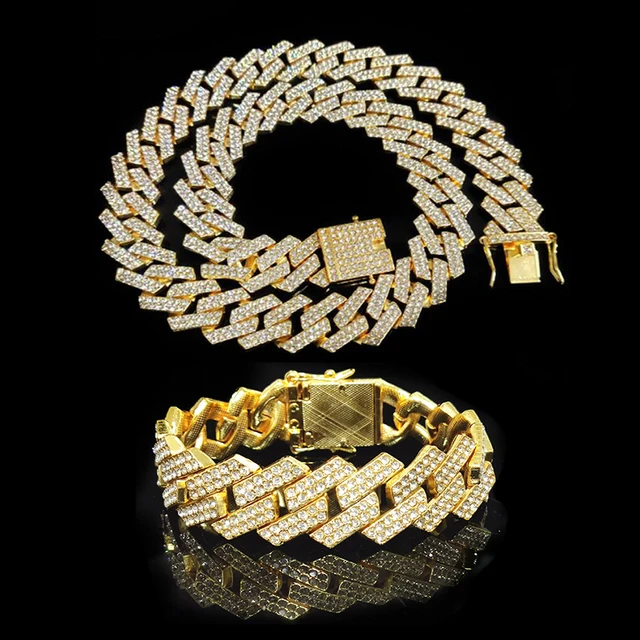Iced Out кубинская звеньевая цепочка дизайн: это одна из самых популярных и модная цепочка ожерелье. Модный дизайн для любителей хип-хопа, прочная и простая цепочка для ожерелья, изготовленная с покрытием из золота 18 К и серебра.