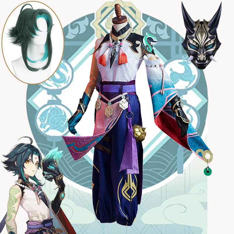 Genshin ударная Аниме игра косплей Xiao костюм парик маска для мужчин