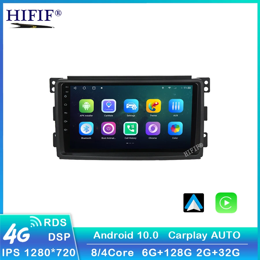 Автомобильная Мультимедийная система Carplay, 9 дюймов, Android 10, Тесла, для Mercedes Benz Smart Fortwo W451, с GPS-Навигатором, 2007-2013