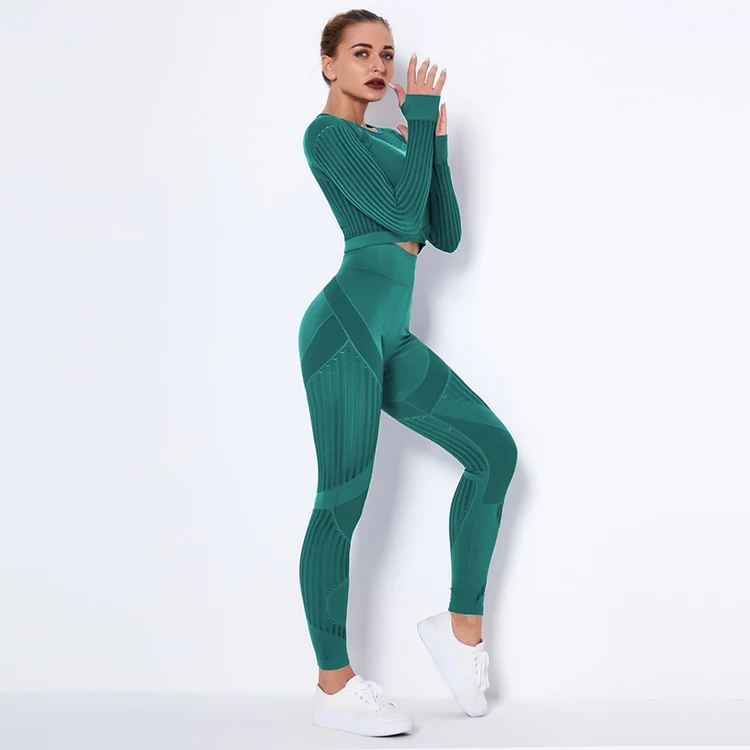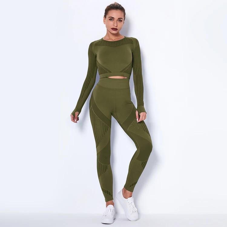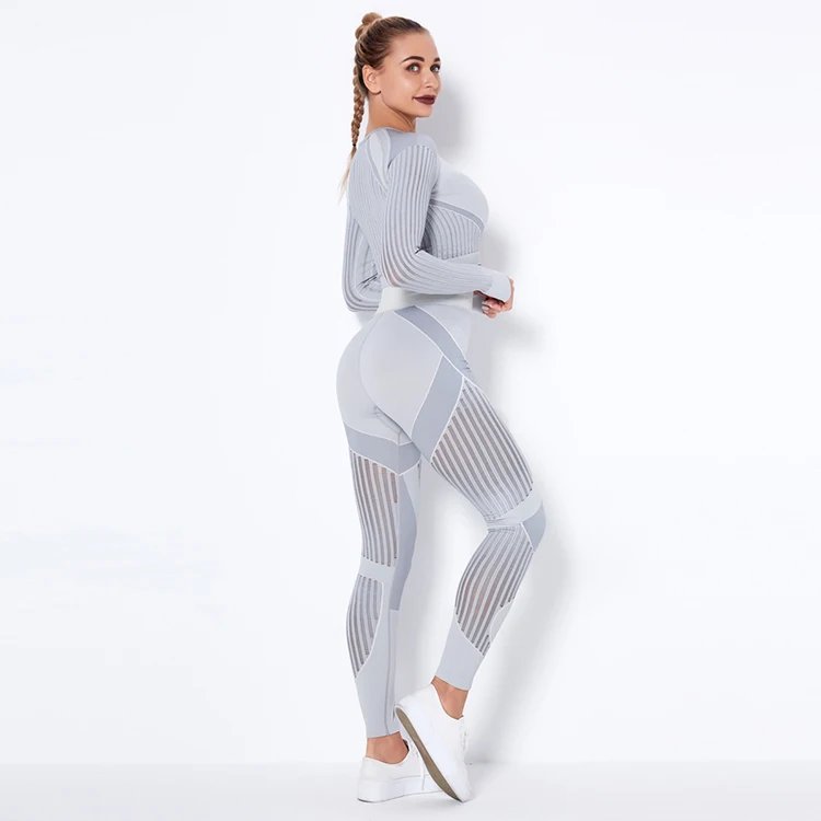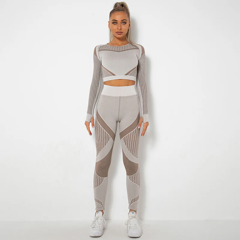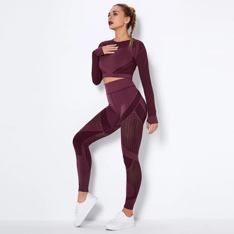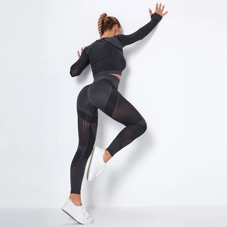 Тренировочная одежда для женщин, бесшовный ажурный костюм для йоги ...