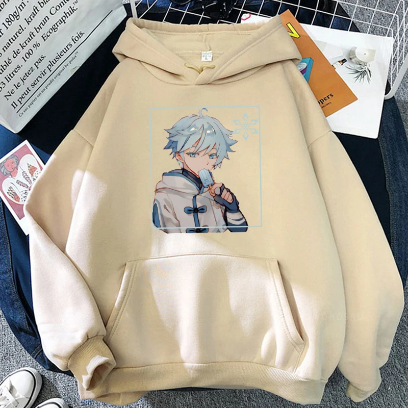 Толстовки Genshin Impact в стиле аниме по мотивам игры Харадзюку, милые зимние толстовки с длинным рукавом и изображением мороженого в стиле каваи для мужчин и женщин Chongyun