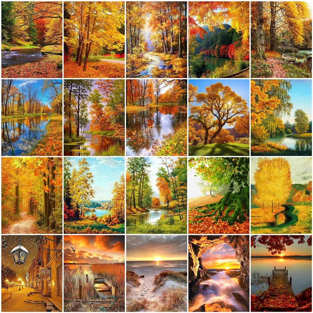 Хуакан живопись по номерам Осенние Пейзажи рисование на холсте Ручная роспись для взрослых картина по номеру дерево домашний декор DIY подарок