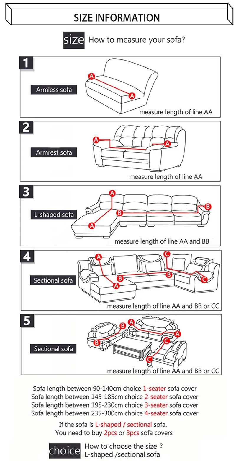 P.S: для углового покрытия для дивана «L Shape» или секционного покрытия для дивана, вы должны купить 2/3 шт., прилагается, пожалуйста, проверьте картинку «Как выбрать чехол для дивана» для вашей справки.