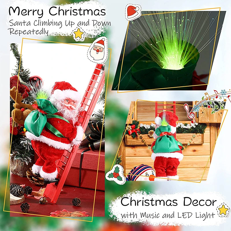 Электрический Санта-Клаус, подъемная лестница, плюшевая кукла, творческая музыка, Рождественский Декор, милый новый год, детские подарки