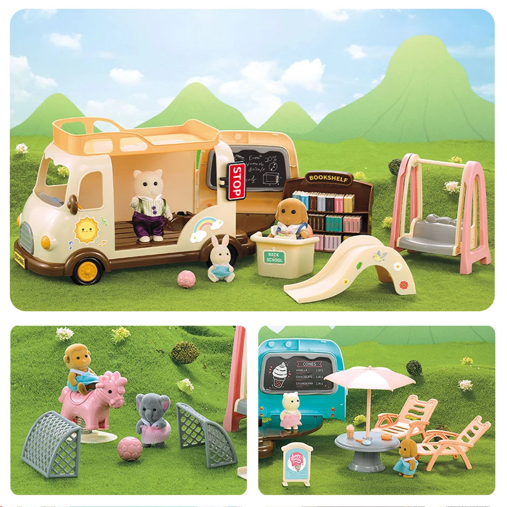 Мебель для кукольного домика в лесном семейном стиле, миниатюрный школьный пляжный автобус 112, набор для парка развлечений, кукольный домик, аксессуары, аксессуары для Miniture