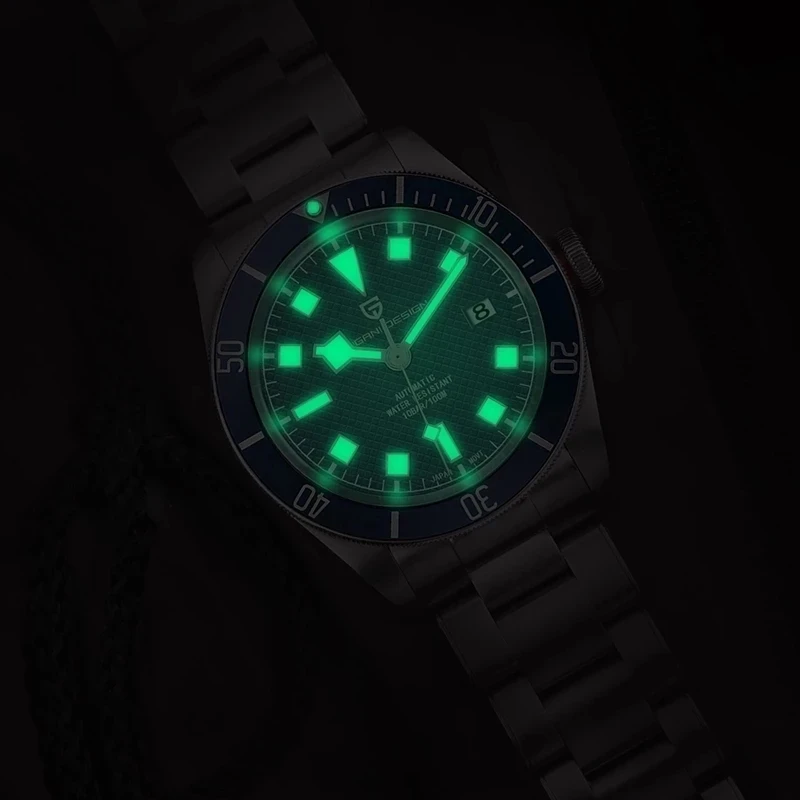 Модель: PD-1671Механизм: Япония Seiko NH35A [автоматический механический механизм]Чехол: материал-нержавеющая сталь 316L, процесс рисования42 мм в диаметреДлина 48 ммТолщина 13 ммШирина ремешка 20 ммСтекло: сапфировое стеклоБезель: анодированный алюминиевый дефлектор, световой знак 12 часовЦвет циферблата: матовый черный, матовый синий, матовый красный, матовый черный и синийСтрелки: ретро Снежинка руки, светящееся покрытиеСветящийся: Ретро светящийся эффект BGW-9 синий светильник, стрелки и маркерыКорона: заводная головка с 3D логотипом бренда с глубоким прессованным узоромЧехол на заднюю панель: прозрачная нижняя крышка с винтомРемешок: твердый браслет из нержавеющей стали 316L с заклепкамиЗастежка: Складная безопасная пряжка с логотипом PAGANIВодонепроницаемость: 10 бар = 100 метровВес: около 145 г