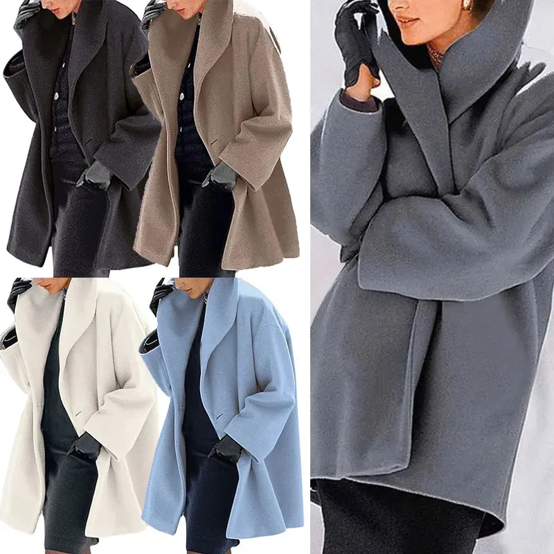 Модное женское однотонное длинное пальто в стиле High Street, Осеннее повседневное теплое двухстороннее шерстяное пальто, элегантные куртки с лацканами и длинным рукавом