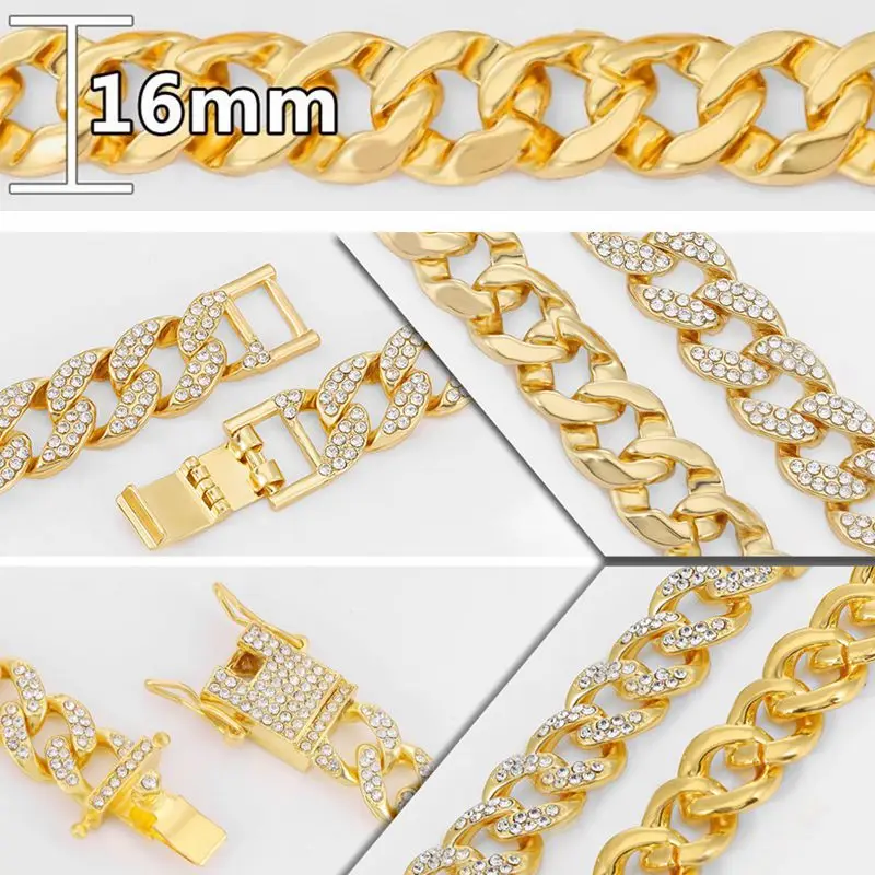 Iced Out кубинская звеньевая цепочка дизайн: это одна из самых популярных и модная цепочка ожерелье. Модный дизайн для любителей хип-хопа, прочная и простая цепочка для ожерелья, изготовленная с покрытием из золота 18 К и серебра.