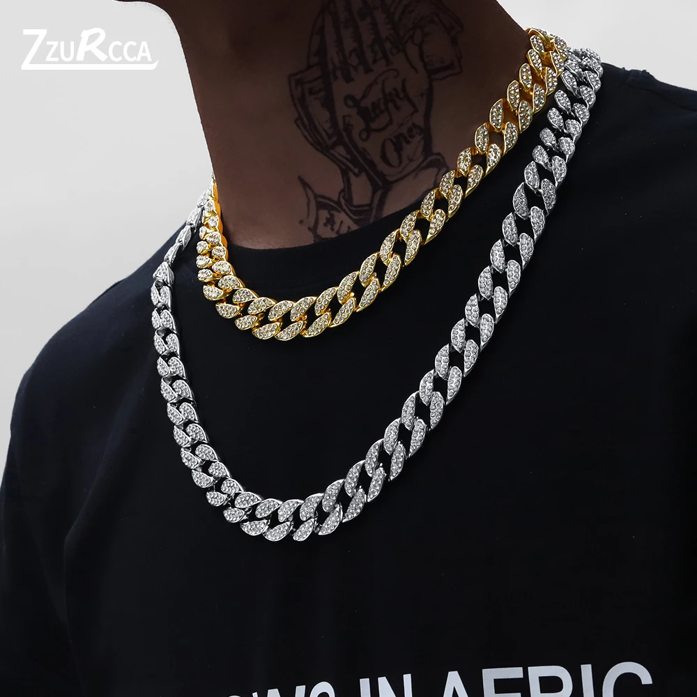 Мужское ожерелье в стиле хип-хоп, цепочка со льдом, стразы, Miami Curb, кубинская цепочка, мужское серебряное золотое ожерелье, цепочка в стиле хип-хоп, ювелирное изделие, подарок