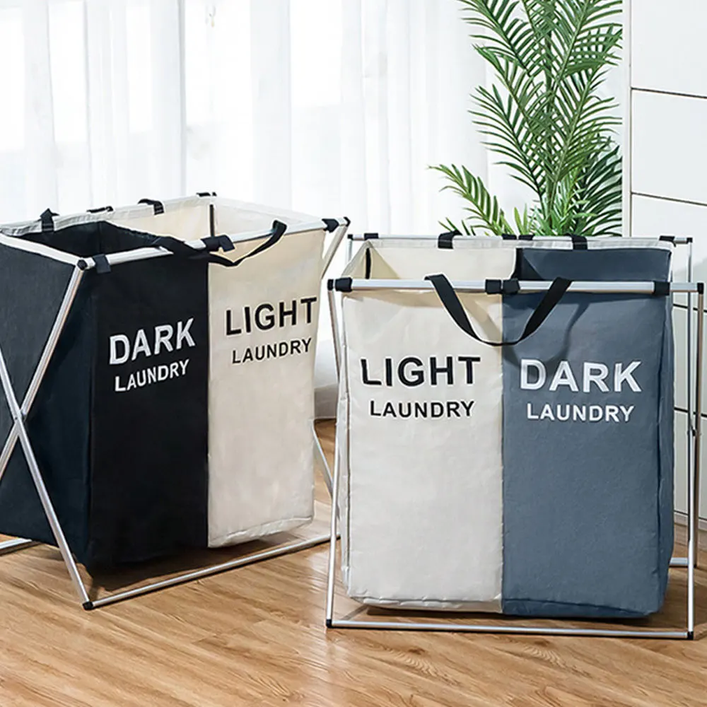 X-образная складная корзина для грязного белья, органайзер с принтом, складная корзина для домашнего белья с тремя ячейками, большая корзина для грязного белья