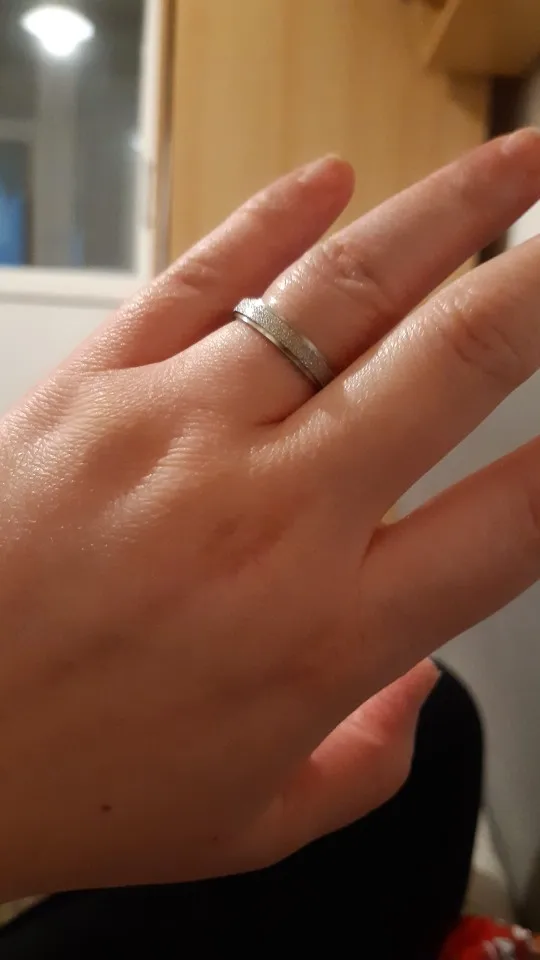 Обычно это тот же размер для всех колец, верно? Я всегда заказываю размер 6, даже этот слишком мал. Хорошо, а потом я ошибся в гравюре