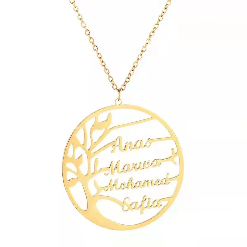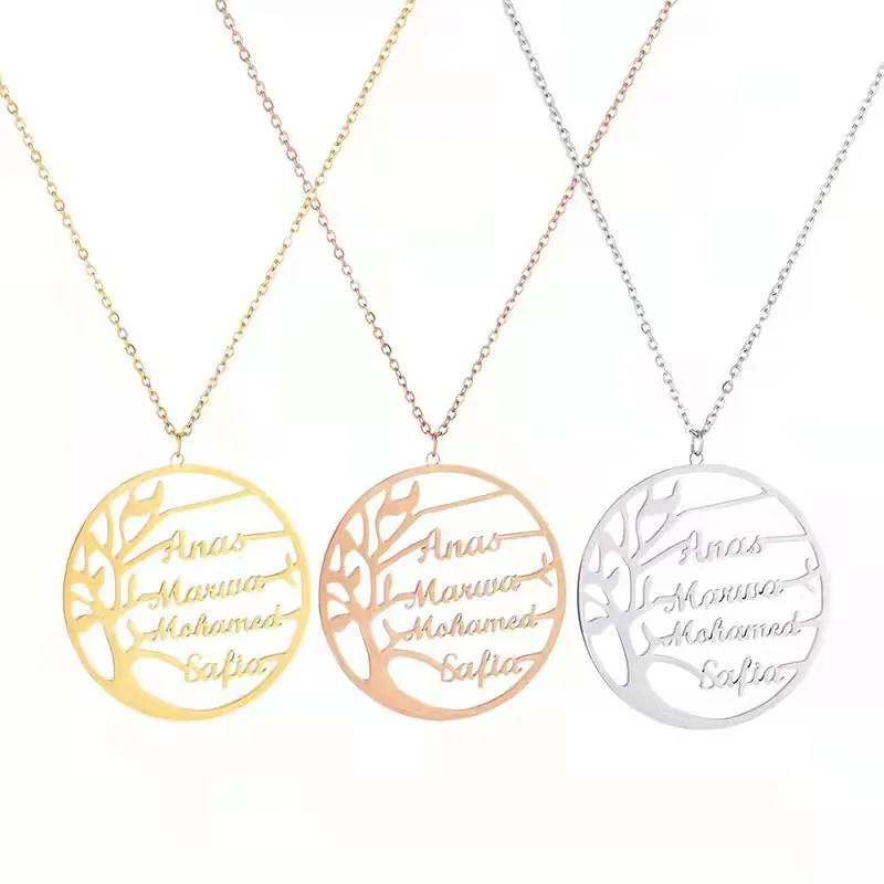Название: пользовательское имя ожерелье из нержавеющей стали о-цепь модное Дерево жизни персонализированное многоименное ожерелье кулон леди подарок на день рождения