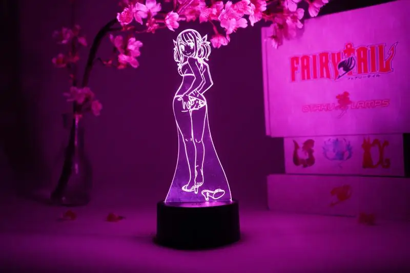 Сказочный высокий Аниме Фигурка Lucy купальник светодиодный светильник для спальни украшение подарок на день рождения лампа манга Фея Высокий 3D светильник