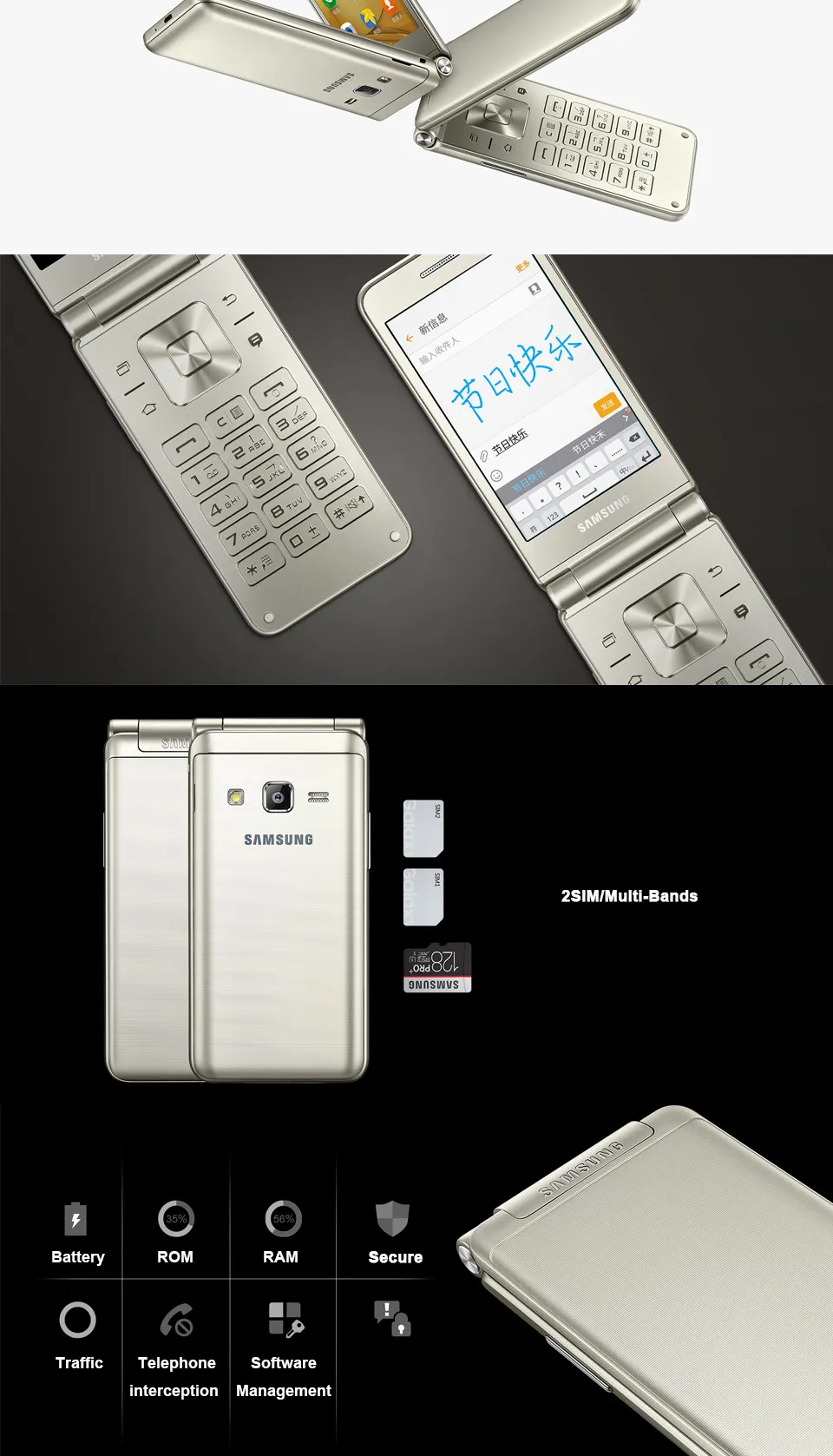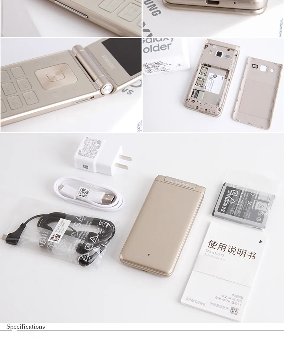 Восстановленный сотовый телефон Samsung Galaxy Folder G1600 с двумя SIM-картами, 4G, LTE, 16 Гб ПЗУ, 8 Мп, 3,8 дюйма, разблокированный оригинальный четырехъядерный смартфон на базе Android