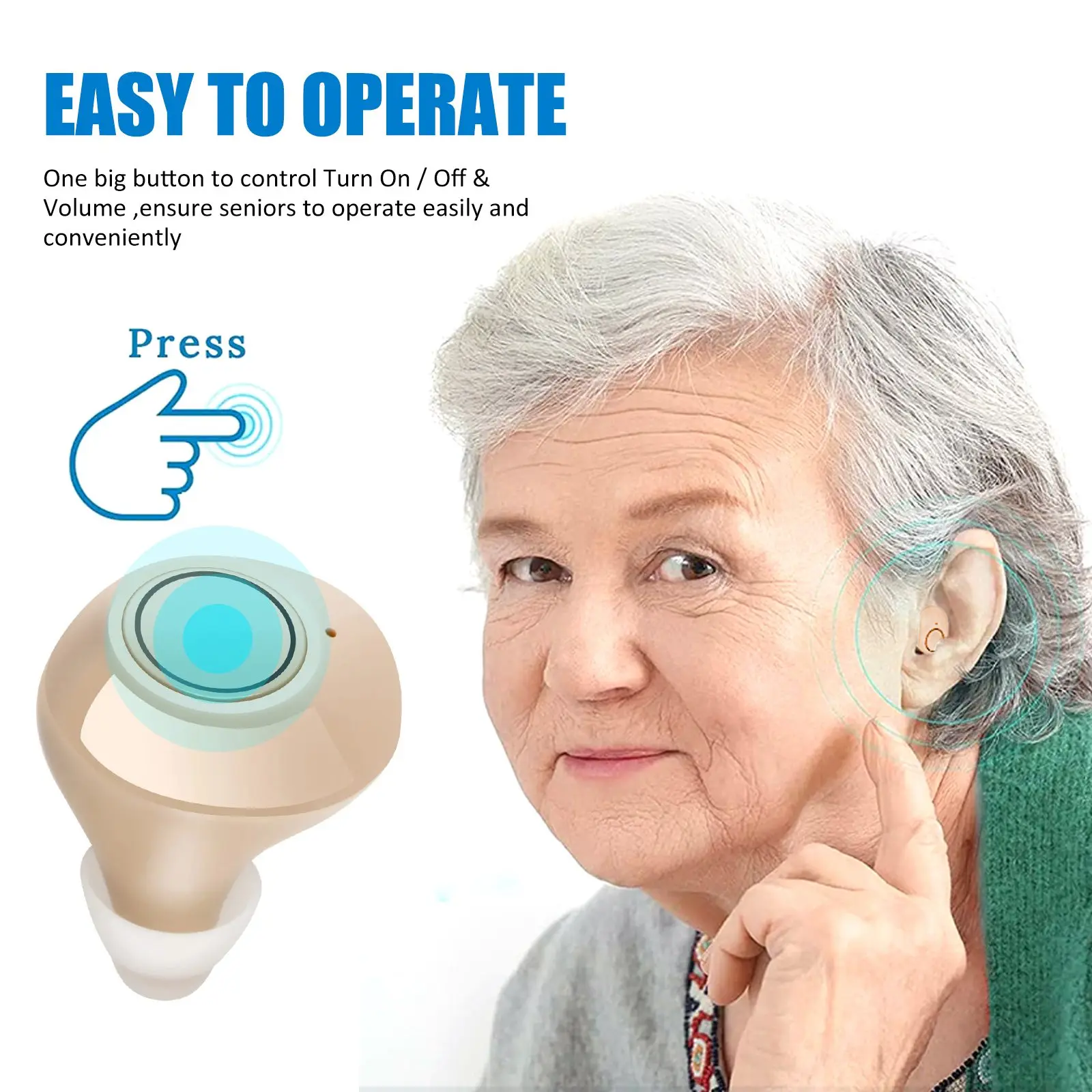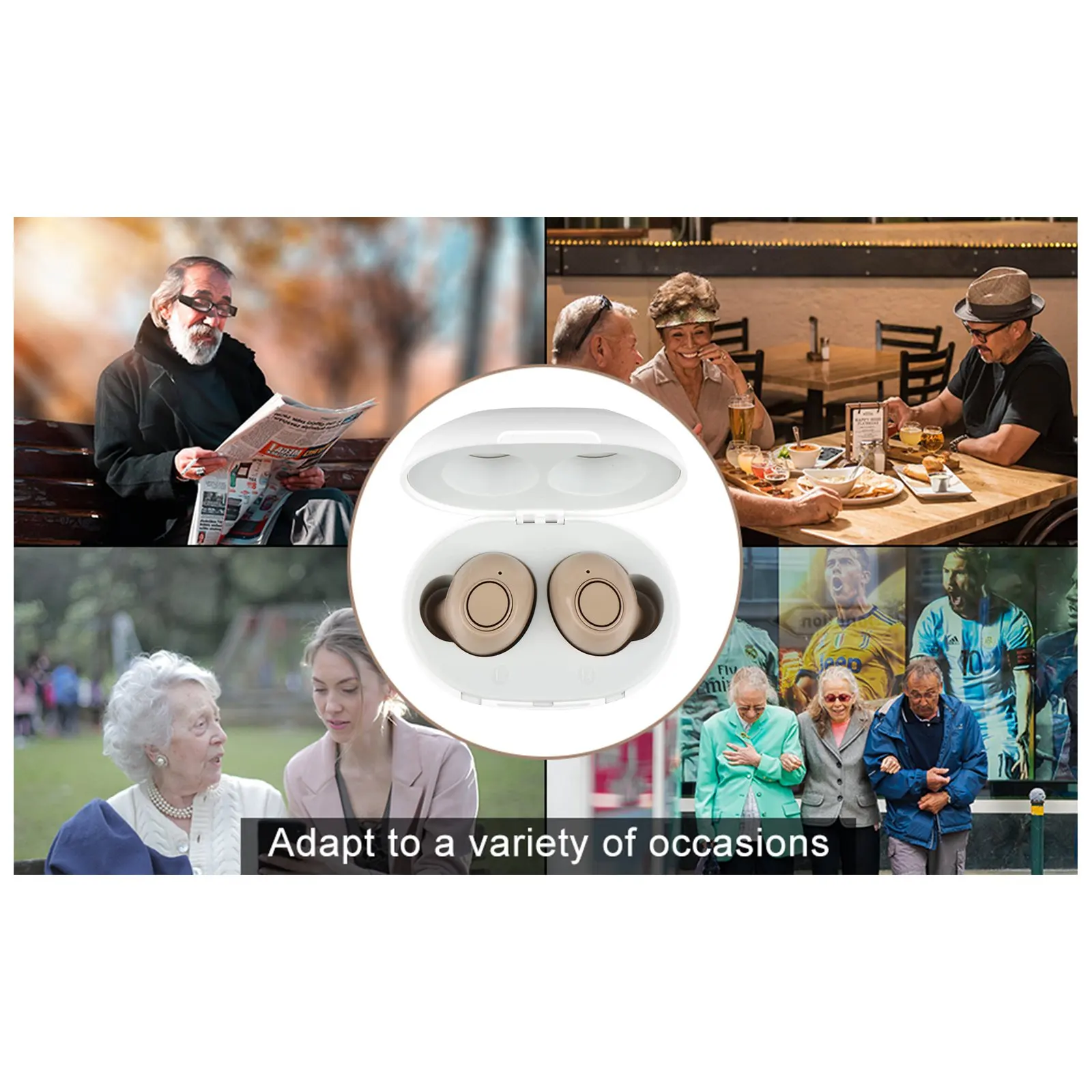 1 пара цифровых слуховых аппаратов, мини USB перезаряжаемое ушное слуховое устройство, управление одной кнопкой, регулируемый громкость, усилитель звука