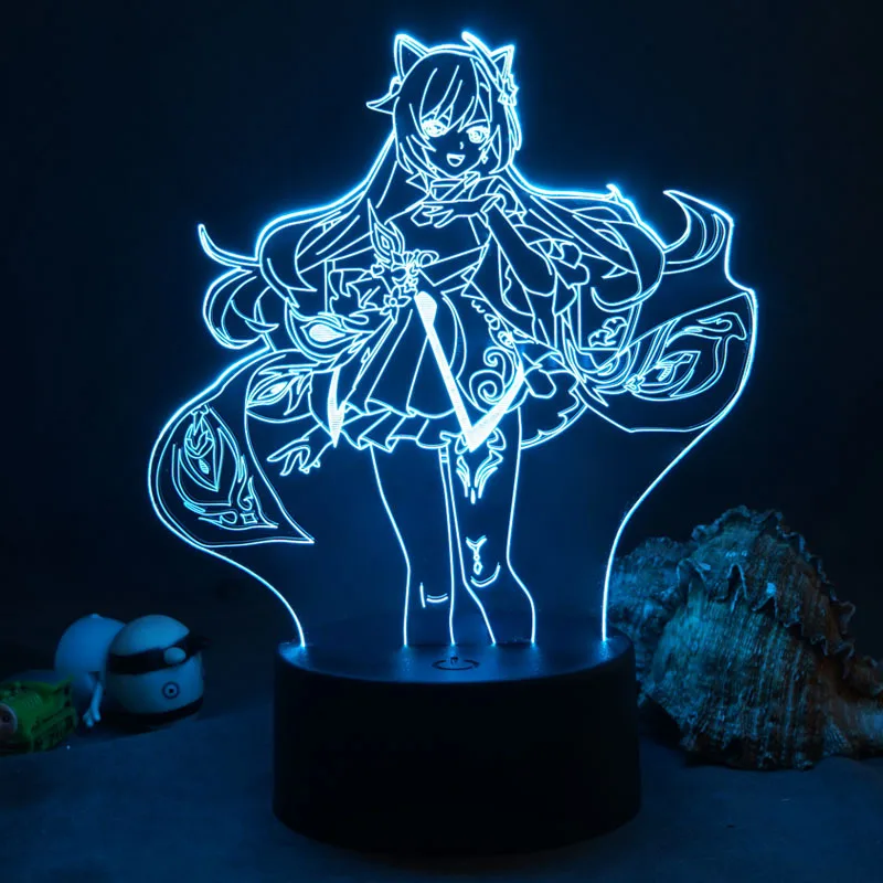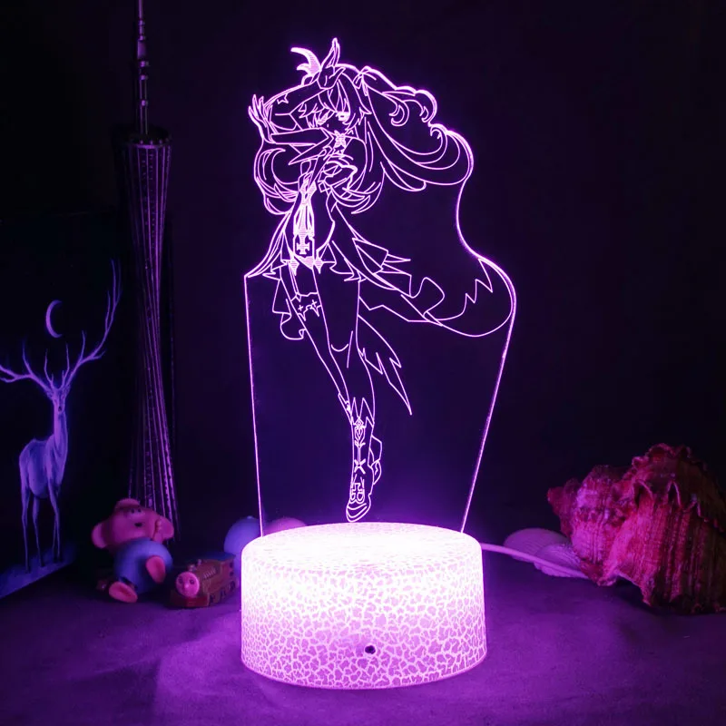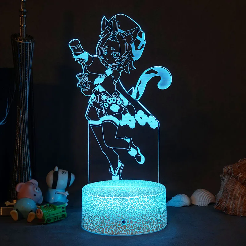 Аниме Genshin ударный 3D ночник светодиодный акриловый 716 цветов Сенсорная Подключаемая настольная лампа детская игрушка подарок на день рождения Рождество