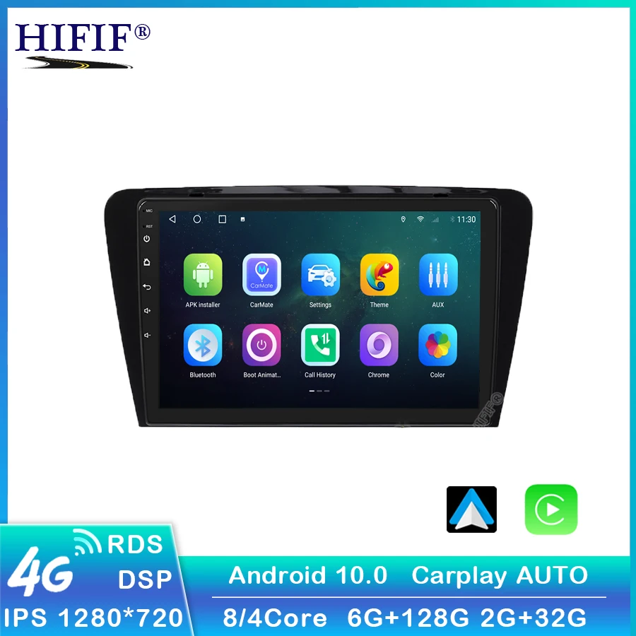 Автомобильный мультимедийный плеер 4 + 64 ГБ DSP Carplay для Skoda Octavia A7 3 2014-2018 мультимедиа 2din Android 10 радио автонавигация GPS