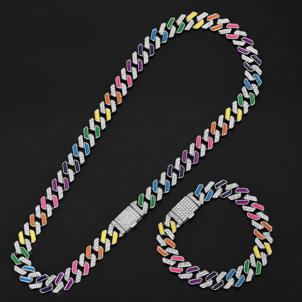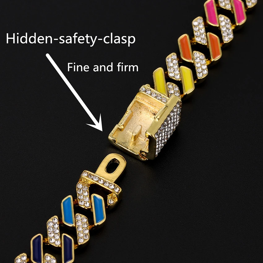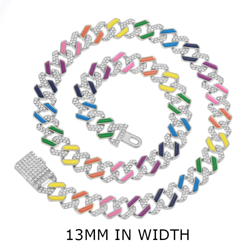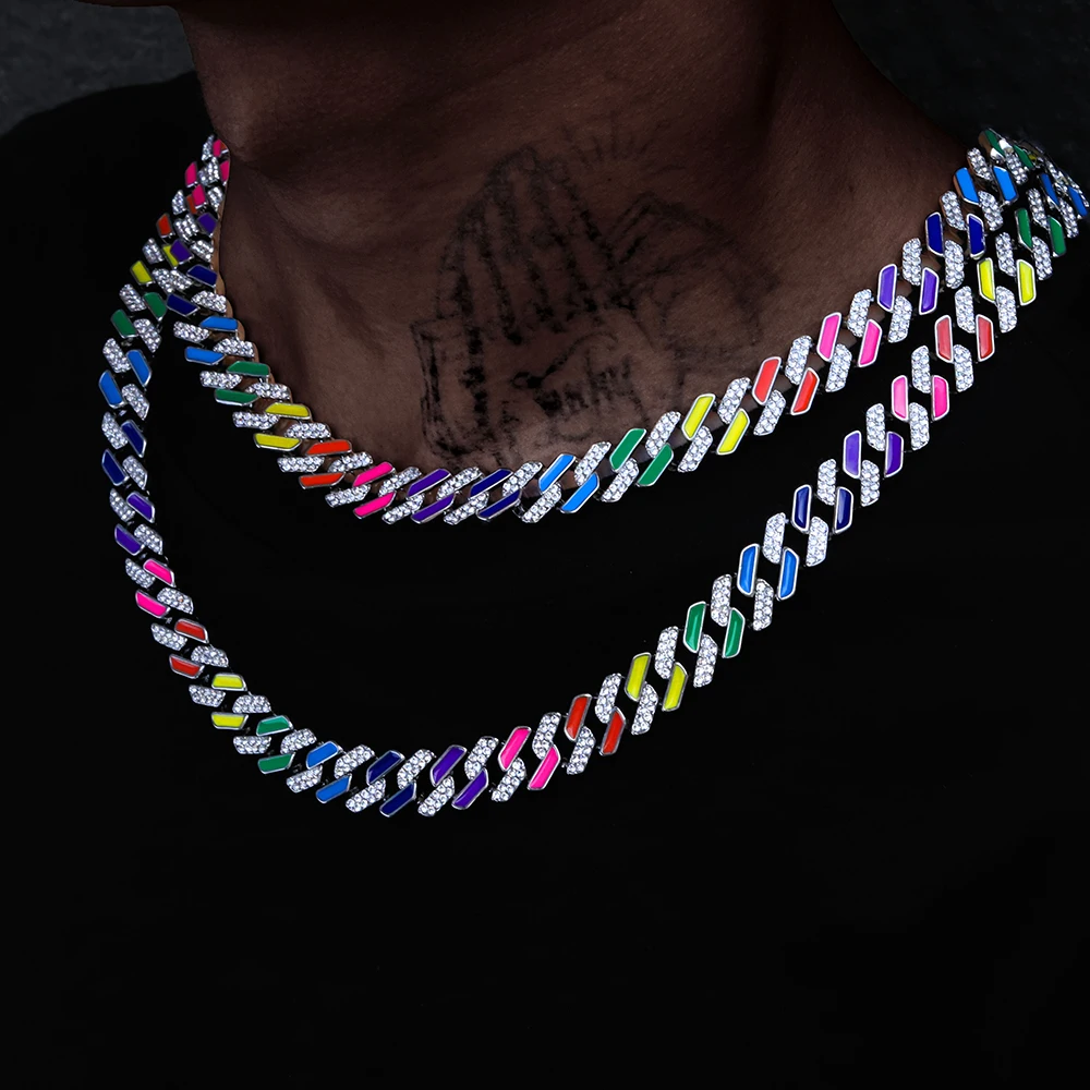 Льдом хип-хоп, КУБИНСКИЙ звено цепи ожерелье для мужчин и женщин с украшением в виде кристаллов разноцветные неоновые эмаль Колье-чокер Радуга браслет, ювелирные изделия в качестве подарка