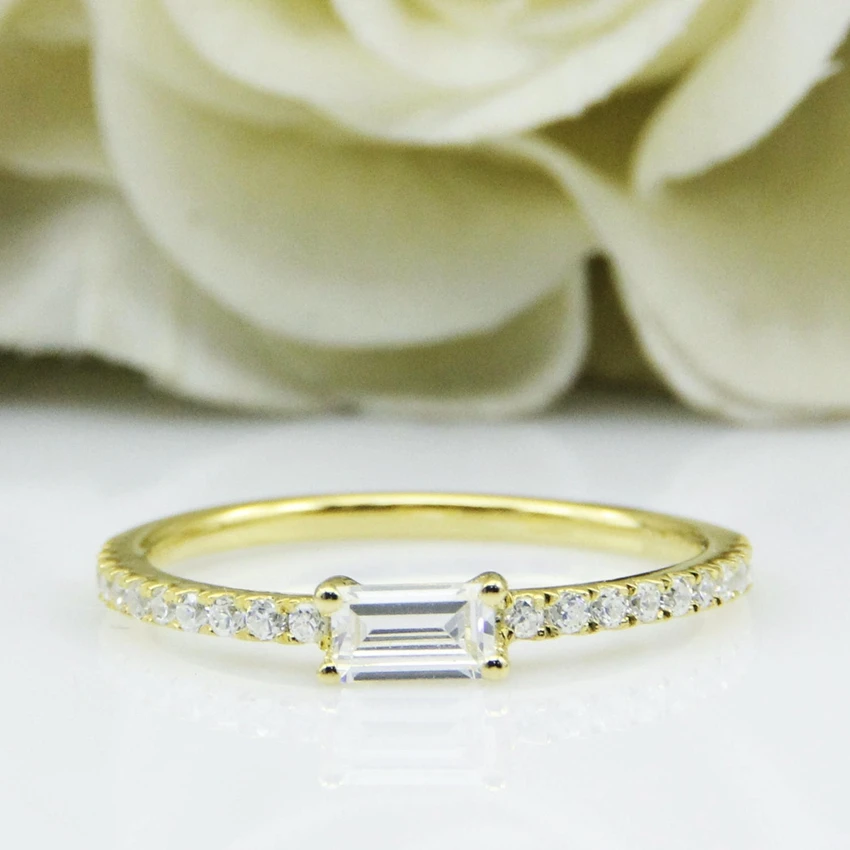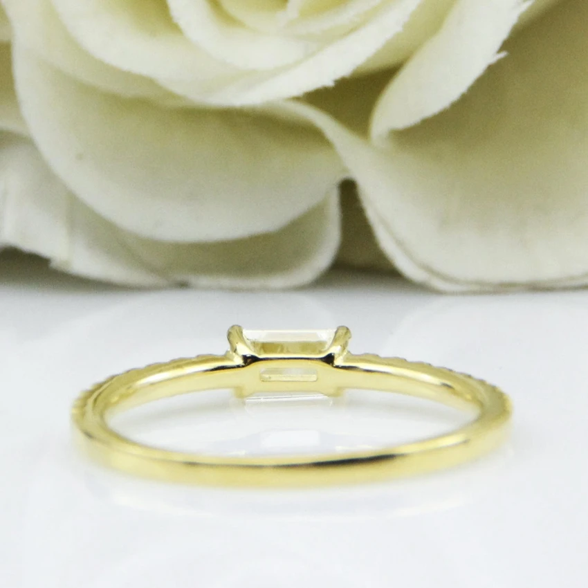 0.4CT 5X3mm изумруд огранка моиссанит кольцо 14K ТВЕРДОЕ желтое золото, моиссанит акценты сторона камня обручальное кольцо, фантазия обручальное кольцо
