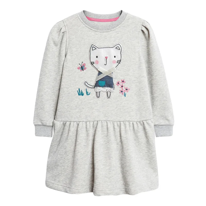Флисовое серое платье с котом Little maven, зимняя и осенняя теплая одежда для маленьких девочек, красивая и удобная одежда