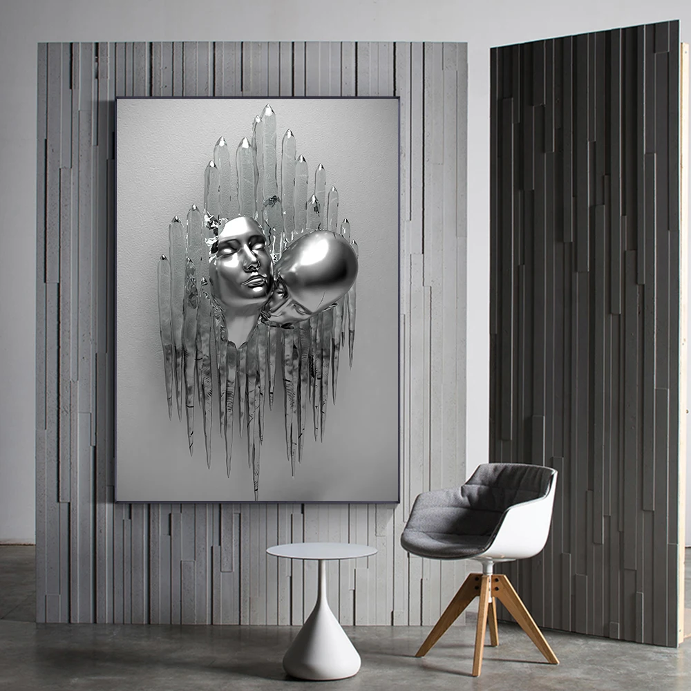 Абстрактная Металлическая Статуя, Художественная Картина на холсте,...