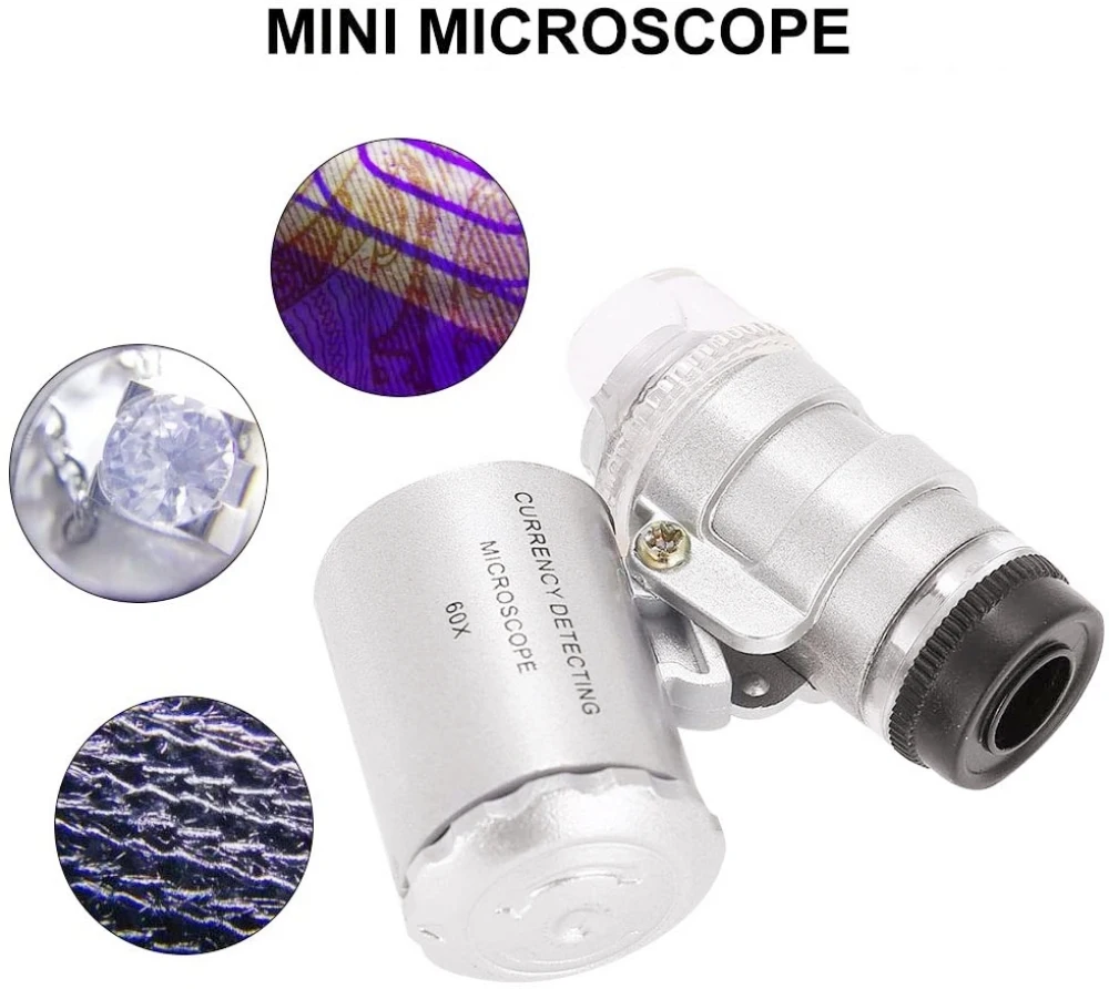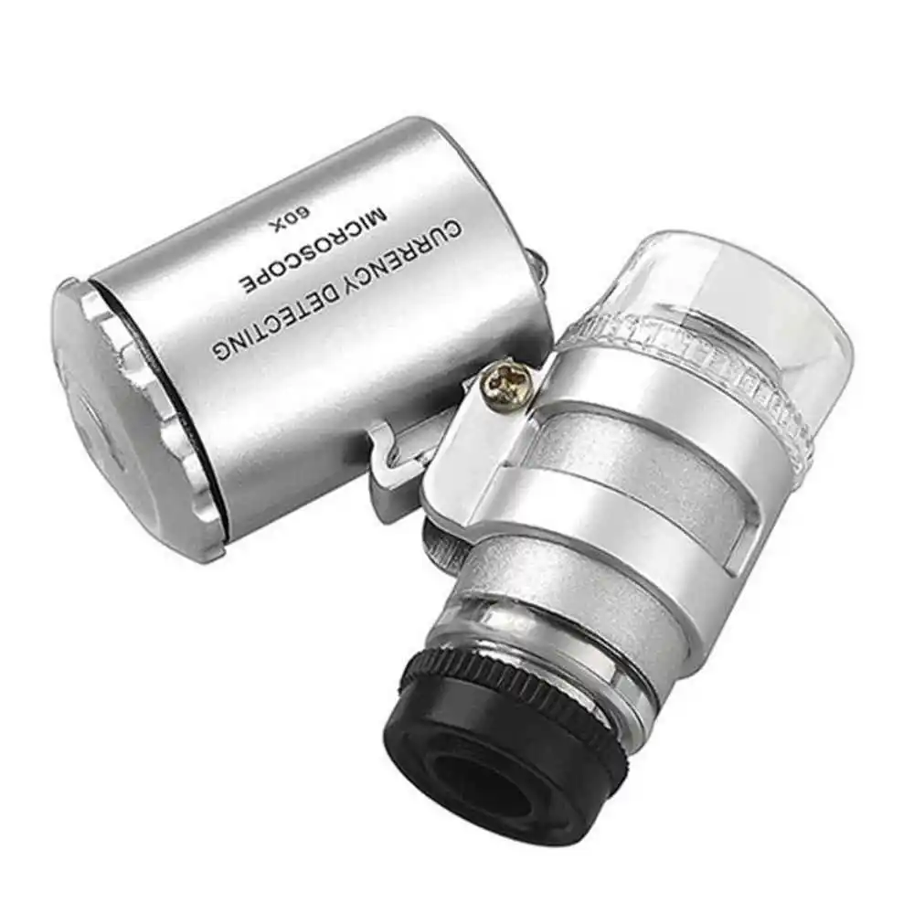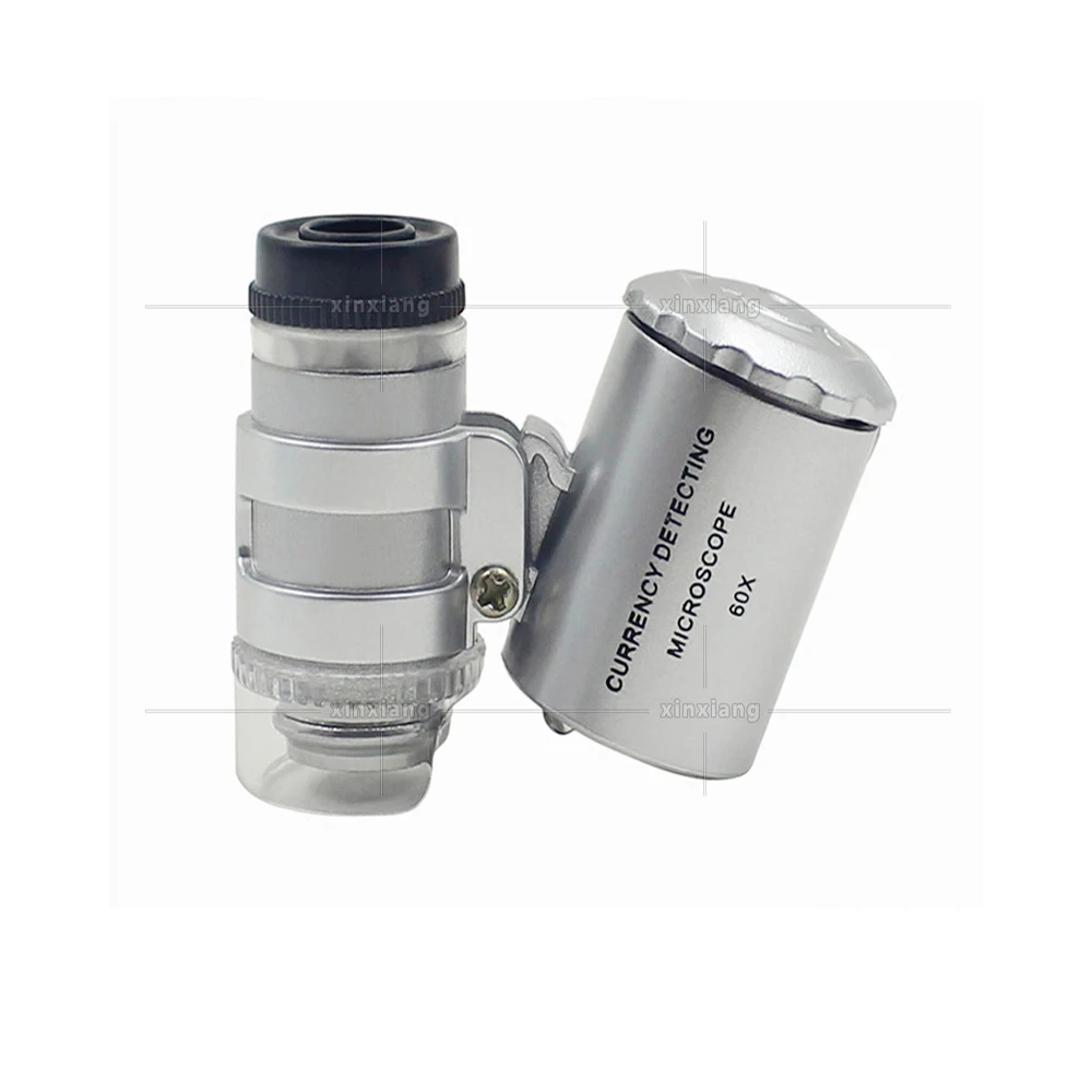 Мини-микроскоп 60x, карманный мини-микроскоп, лупа, ювелирные лупы, стеклянные линзы светодиодный светильник, лампа для обнаружения денег, тестер, Прямая поставка