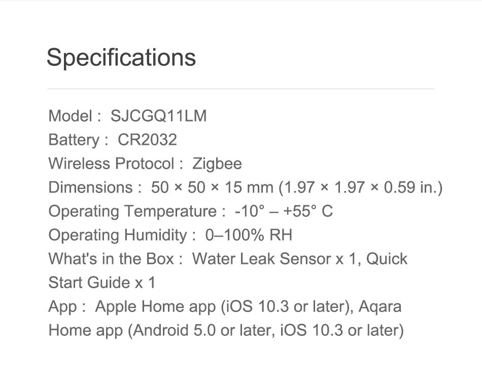 Номер моделиAqara Water Immersing Sensor