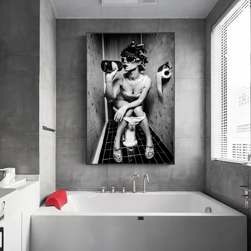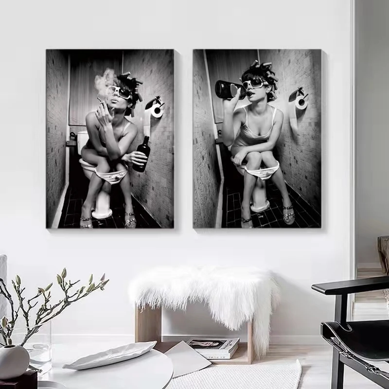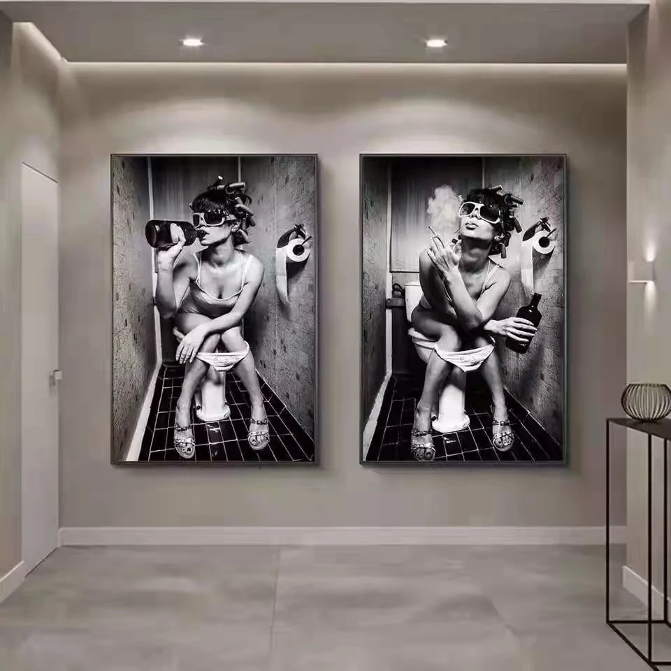Современная унитаза сексуальная женщина мужская холст печать бар де...