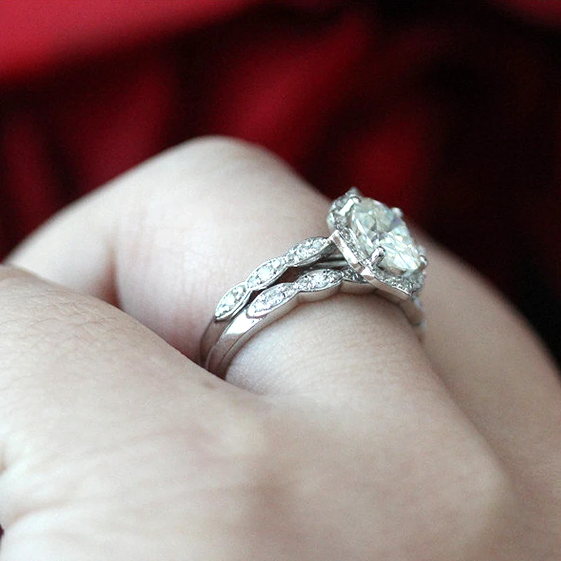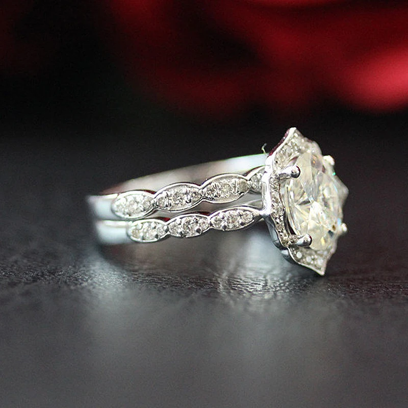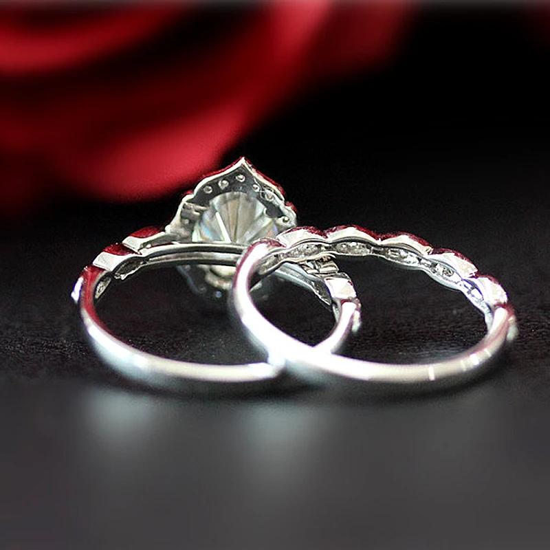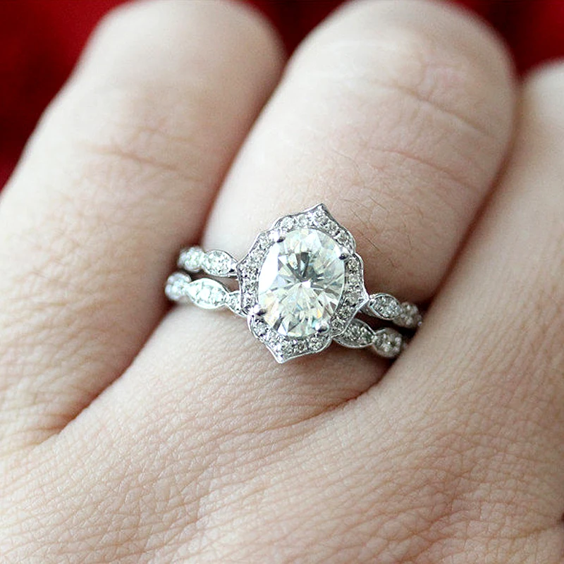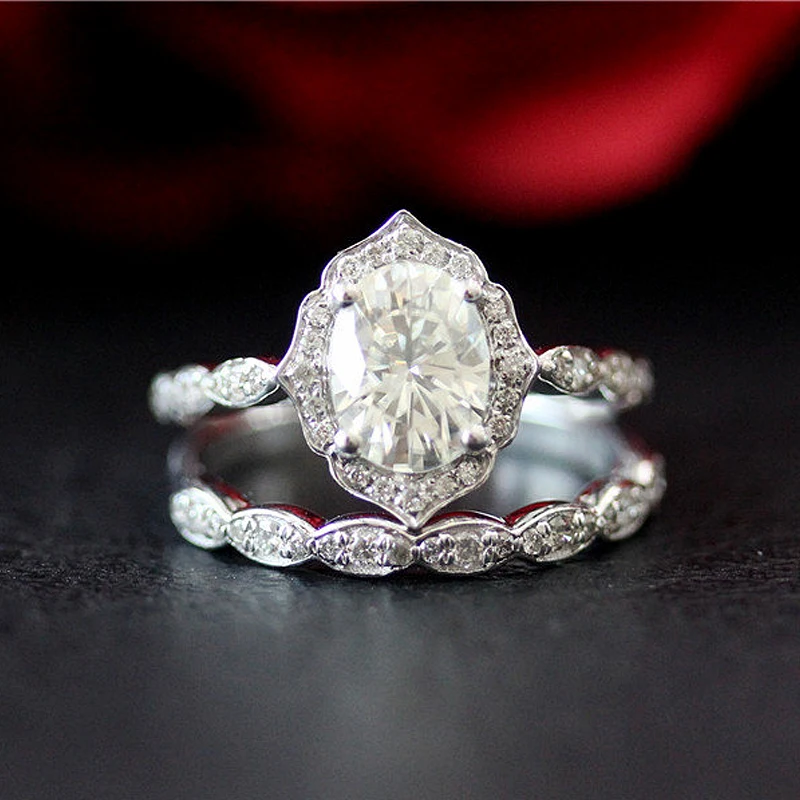 Набор колец с бриллиантовым муассанитом, винтажное обручальное кольцо и обручальное кольцо из твердого муассанита 14 к, белое золото 1,5 карат ct 6x8 мм, овальная огранка
